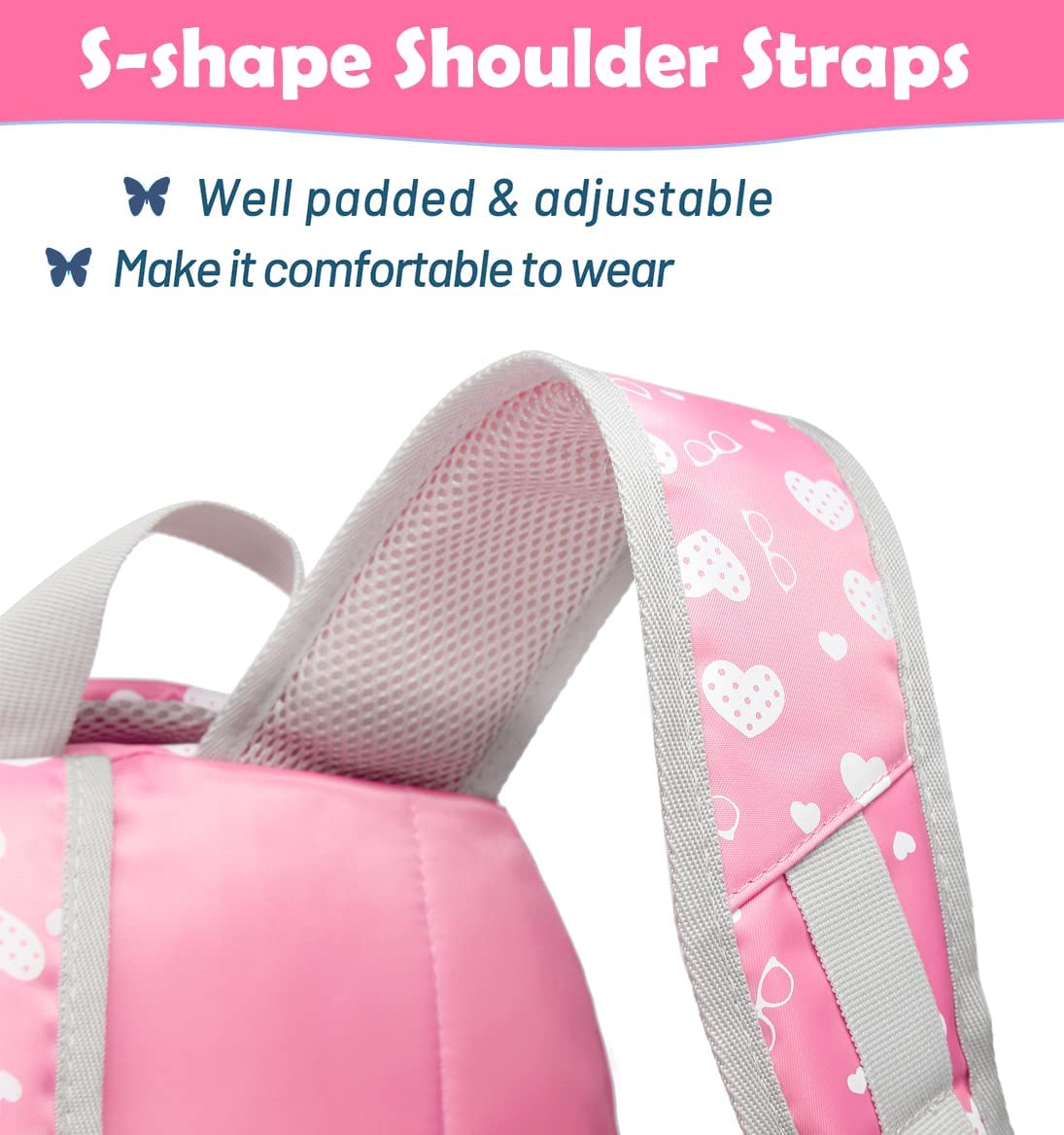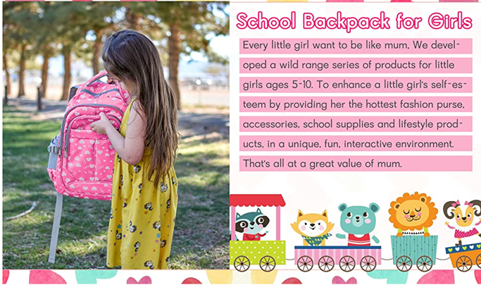 ?【 A PERFECT GIFT FOR KIDS 】--We are always very demanding about kids gifts —no only have exclusive collection of backpacks in trendy colors — pink and rose red,purple, but also protects your kid's favorite items from dust, shocks, bumps, scrapes and scratches & spills. This girls bookbag is prefect as a gifts for toddler at christmas, valetine's day, or birthday.