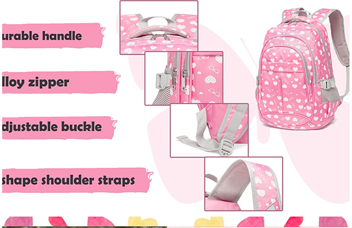 ?【BREATHABLE & ADJUSTABLE SHOULDER 】-- This kids backpack with breathable and adjustable shoulder straps relieve the stress of shoulder. S-shape shoulder straps, comfortable to carry. A strap and a handle on the top. High quality zippers. Sturdy constructions.