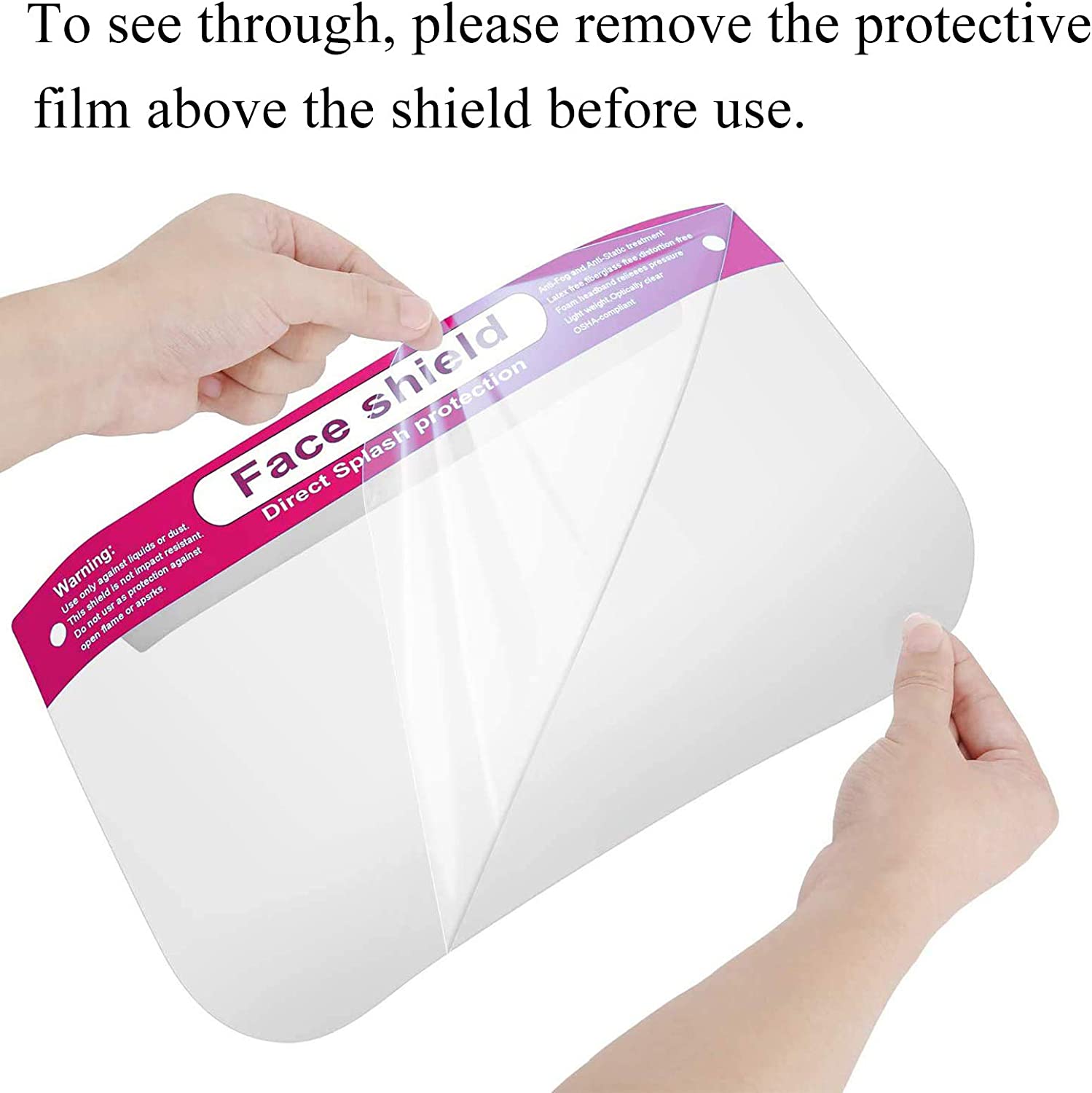 • Pack of 2 pcs face shield. Face Shields with no assembly needed. NOTE: Before use, make sure to remove the protective plastic film from both sides of the mask