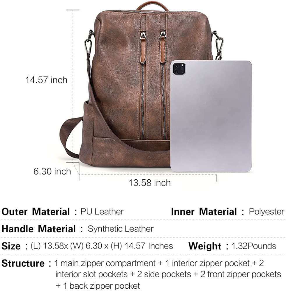 • [WELL-DESIGNED] The shoulder straps of the leather backpack are adjustable. And you can carry it as a single-shoulder bag or casual backpack as there is a extra removable short shoulder strap.