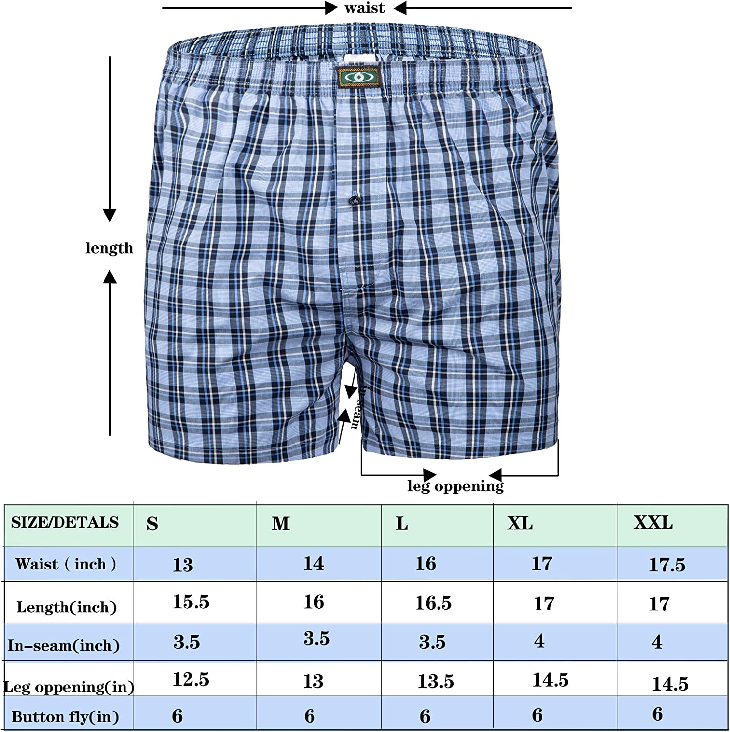 Full cut style: Haoshihe mens boxers is with 4.4’’ inseam. Length is down to mid-thigh and the baggy bottom provides large movements.
