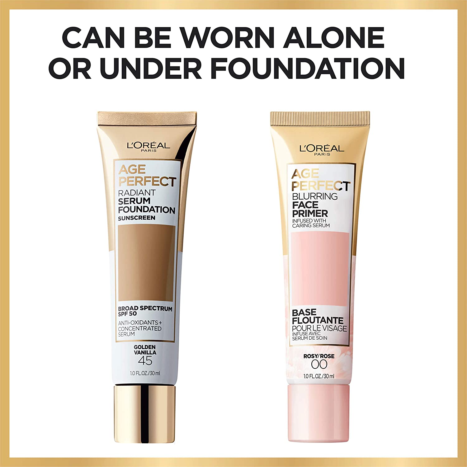 Age Perfect by L'Oreal Paris blurring face Primer is infused with a caring serum and features a universal rosy formula
