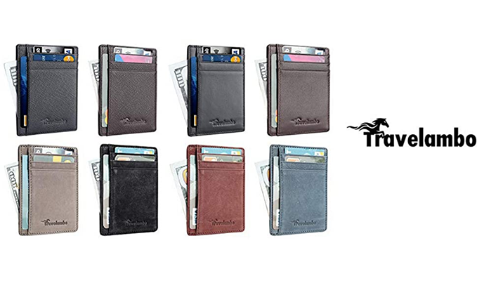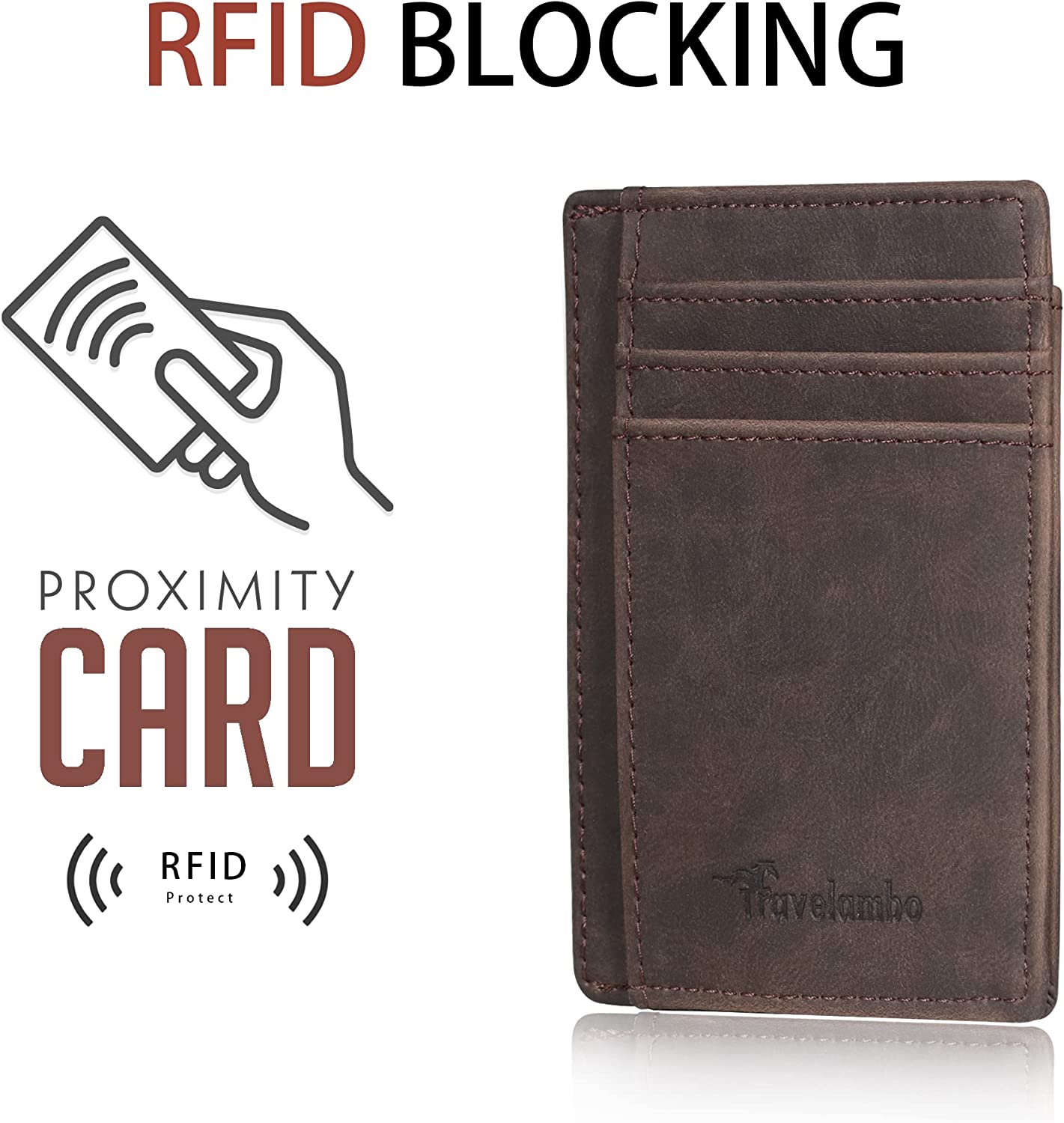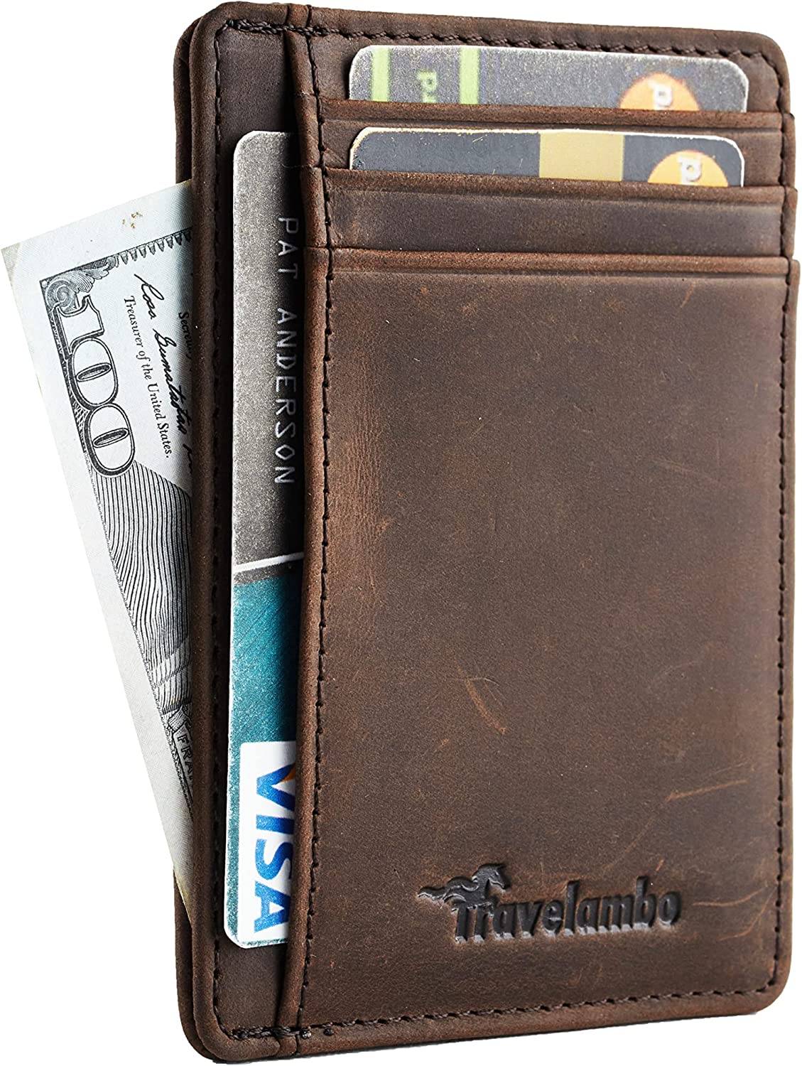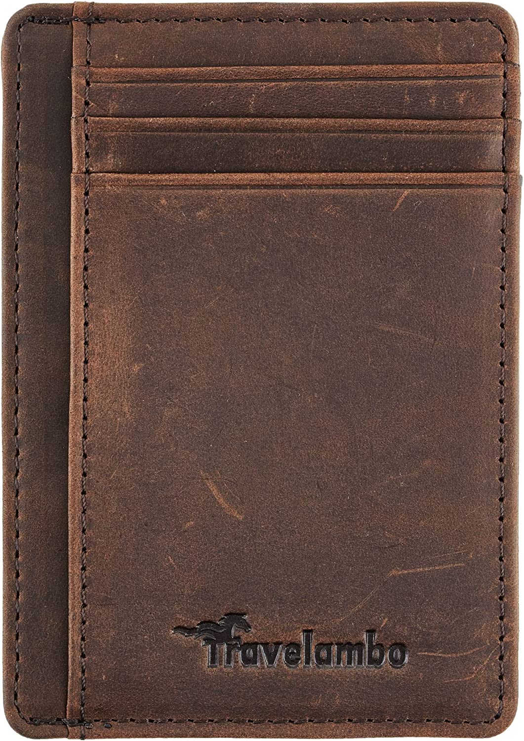 Travelambo Front Pocket Minimalist Leather Slim Wallet RFID Blocking Medium Size
