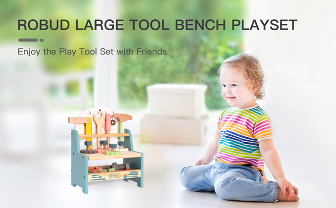 • [ Safety & Nature ] - Robud Workbench made of solid wood, sturdy and durable construction, The surface is smooth without burr, All edge rounded corner design, So your toddlers won't get hurt on this Tool Stand toy