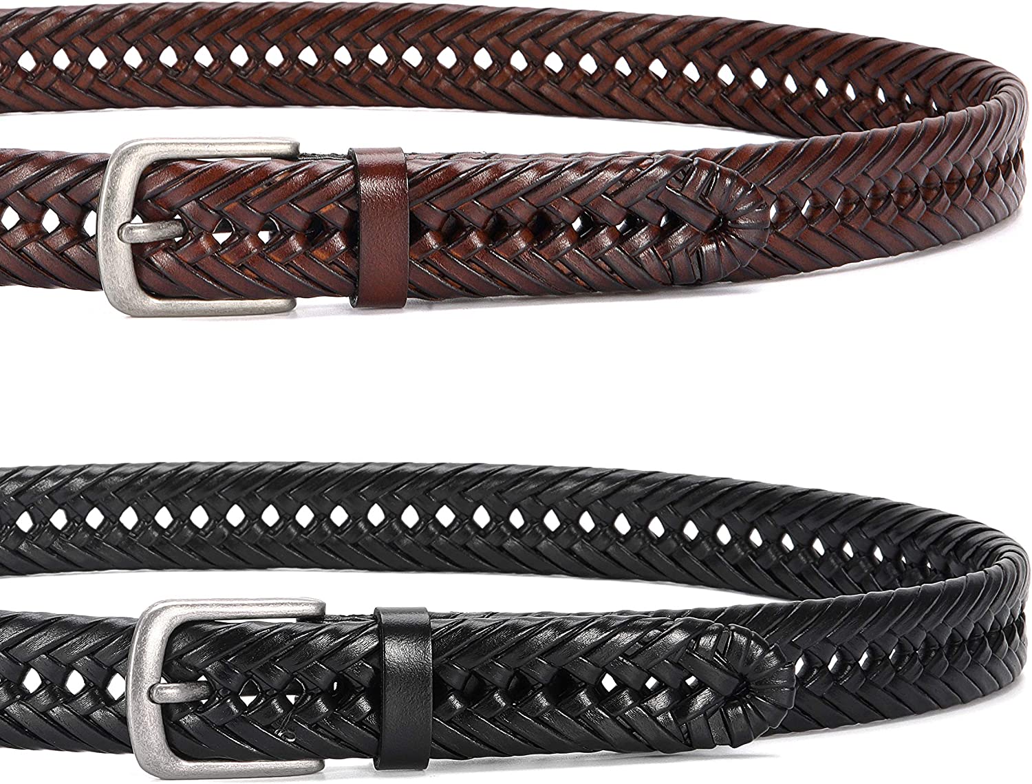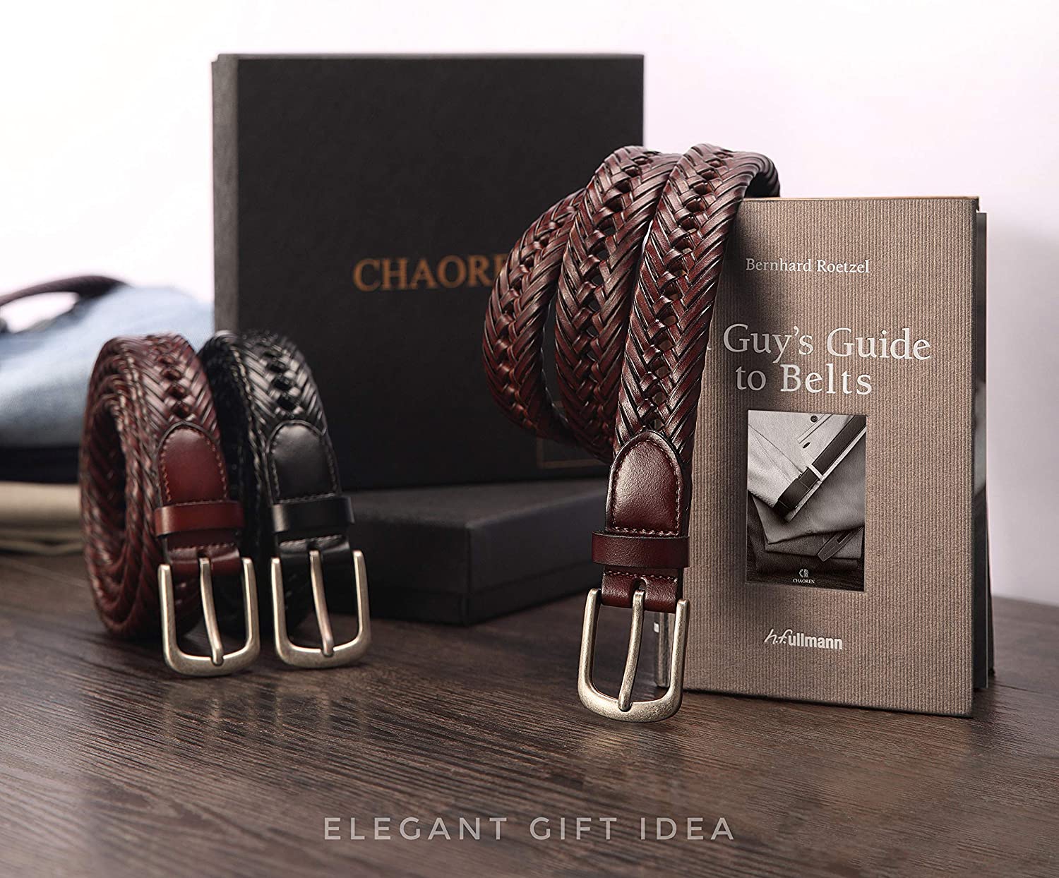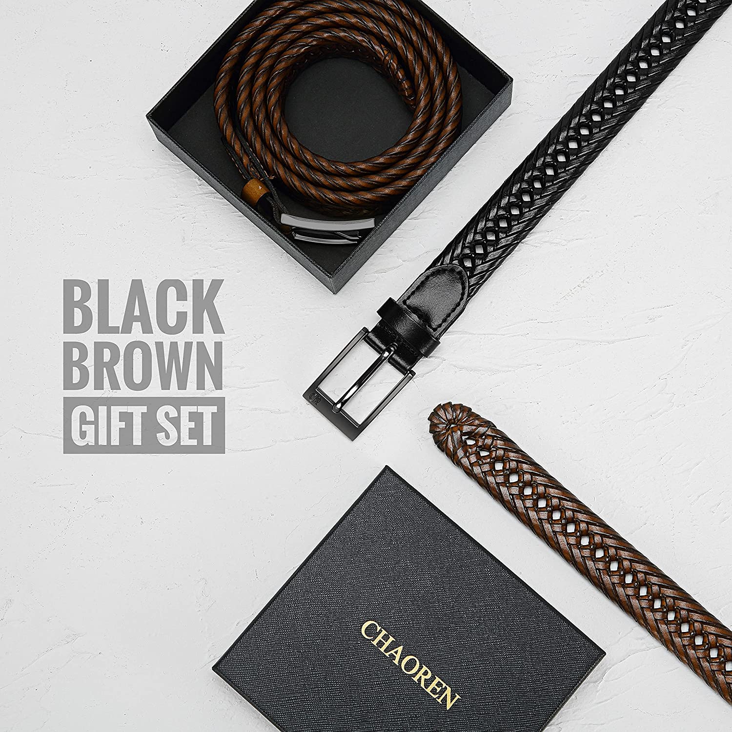 CHAOREN Braided Belt for Men 2 Pack - Mens Belt Leather 1 1/8" in Gift Set Box - Fits Almost Any Occasion and Look