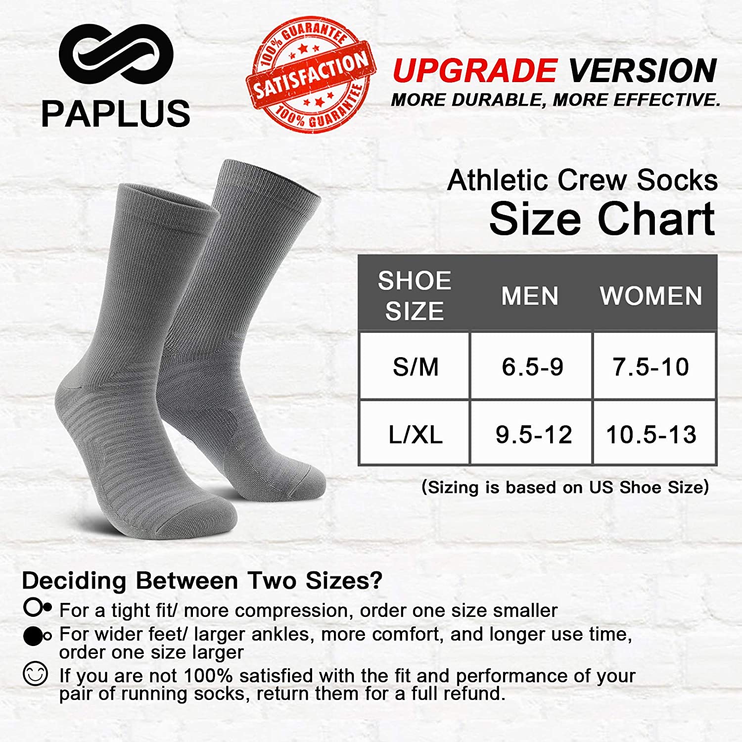 PAPLUS Compression Athletic Crew Socks (6 Pairs) for Men & Women