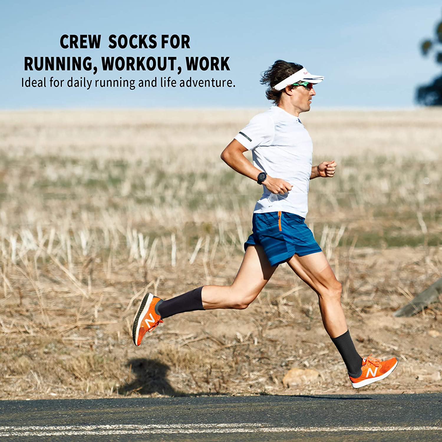 • [COMFORT & DURABILITY] With additional length to keep your ankle stable. All this in a sock, just high enough for a feeling of protection, performance, comfort. Durable Reinforced Heel and Toe make your crew socks last longer. Great gift choice for joggers, athletes, workout fanatics, office workers, traveller, and all kinds of people