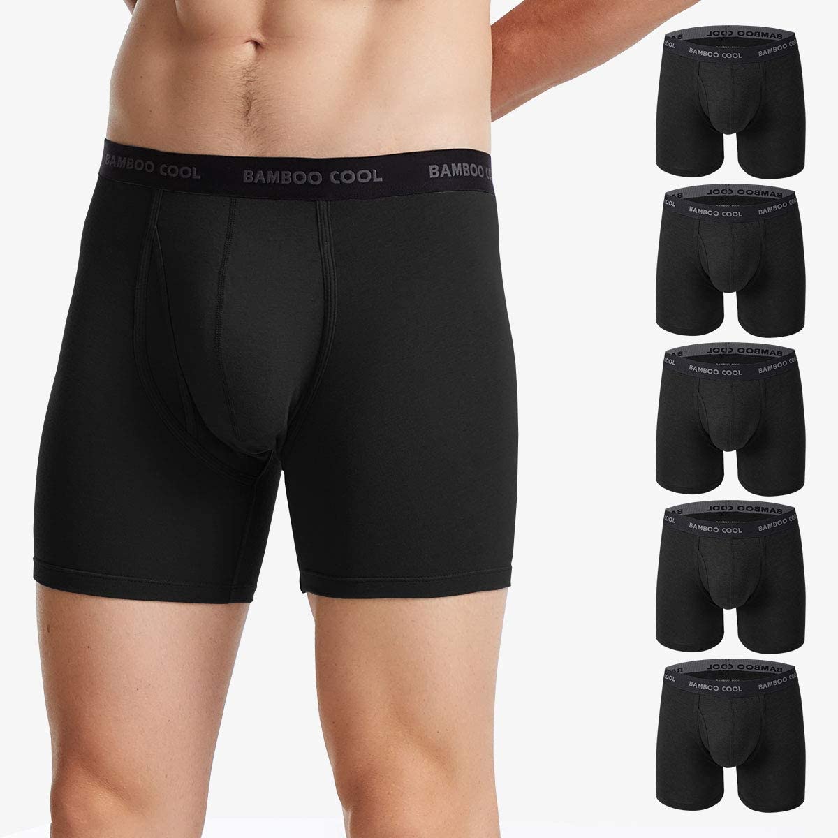 BAMBOO COOL Men's Underwear Boxer Briefs Pack Bamboo Viscose Soft Breathable Long Underwear Trunks