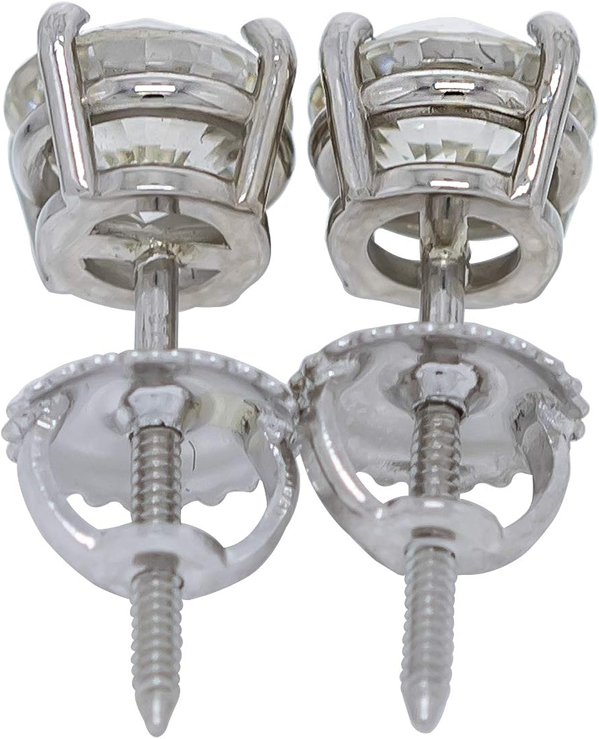 • Total 2 stone diamond carat weight 1.50 cttw. minimum clarity VS2-SI1 minimum color I-J. Simple and classic, these solitaires are set in a four prong basket style 14K white gold post setting with screw back closures.