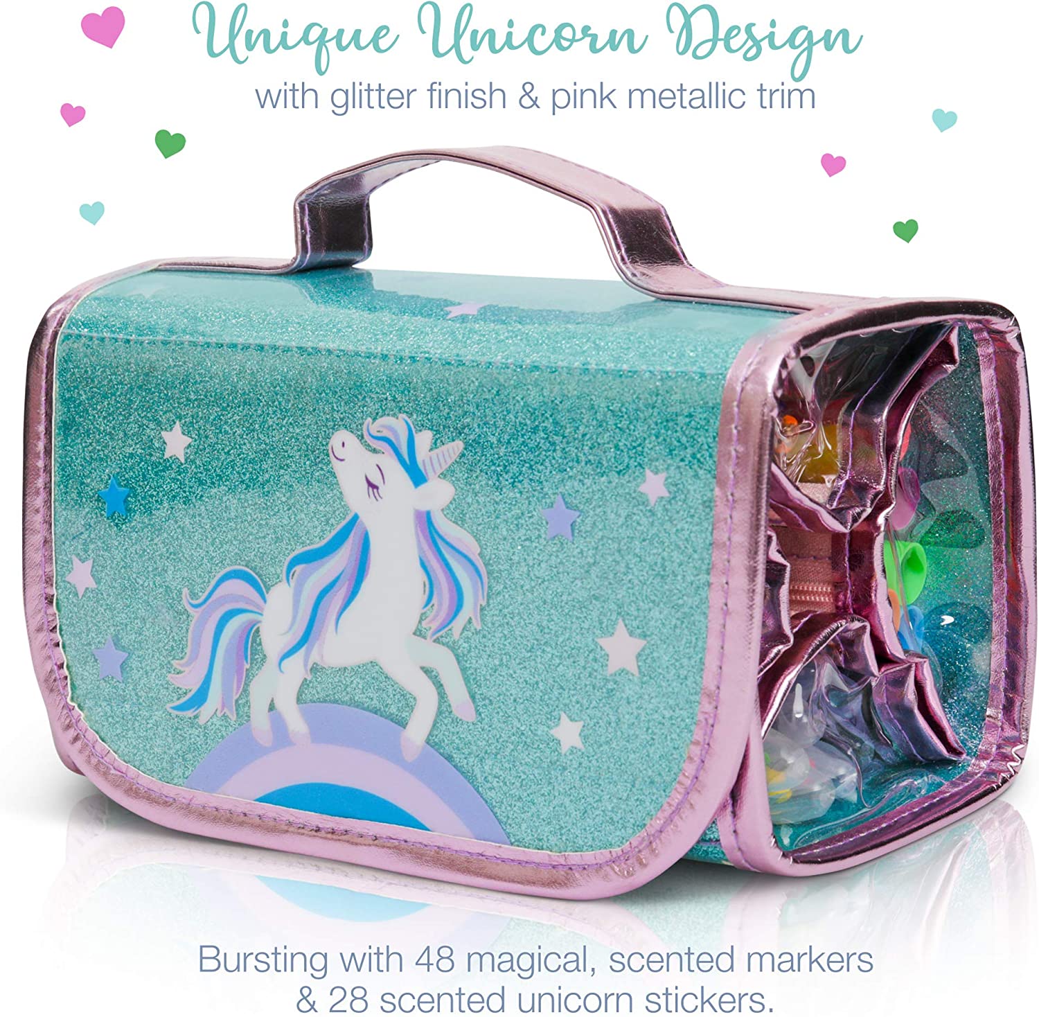 • Unicorn Gifts For Girls: Do you have a little girl in your life who LOVES unicorn stuff? Whether you are looking for girl birthday gifts, a Christmas gift, Easter toys, unicorn gifts or simply an “I love you” gift - this unicorn scented marker pen set will be sure to create that "WOW" moment for any unicorn lover. Presented in a premium, super cute, sparkly unicorn pencil case, this product comes ready to give.
