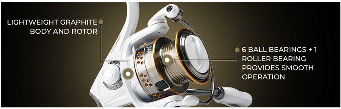 Taking design cues from the Revo lineups, the Pro Max spinning reel boasts the same exceptionally smooth package as its low-profile counterpart with a lightweight graphite frame and seven bearing system. The Pro Max also features our Rocket Line Management System allowing maximized casting distance while reducing wind knots.