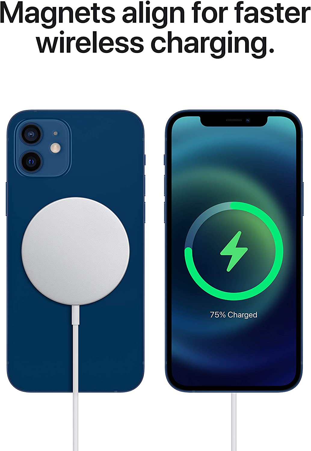The MagSafe Charger makes wireless charging a snap. The perfectly aligned magnets attach to your iPhone 14, iPhone 14 Pro, iPhone 13, iPhone 13 Pro, iPhone 12, and iPhone 12 Pro and provide faster wireless charging up to 15W.