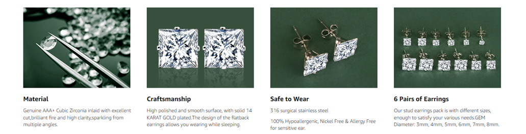 - Genuine AAA+ Cubic Zirconia which is flawless as man made with excellent cut, brilliant fire and high clarity. Classic stud earrings can enjoy them all day every day.