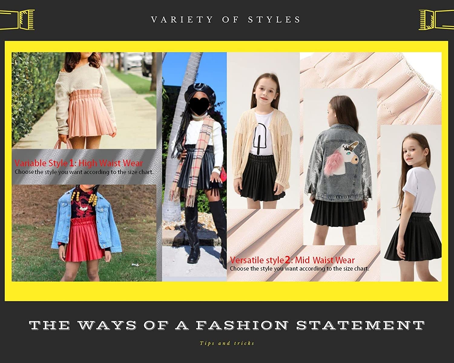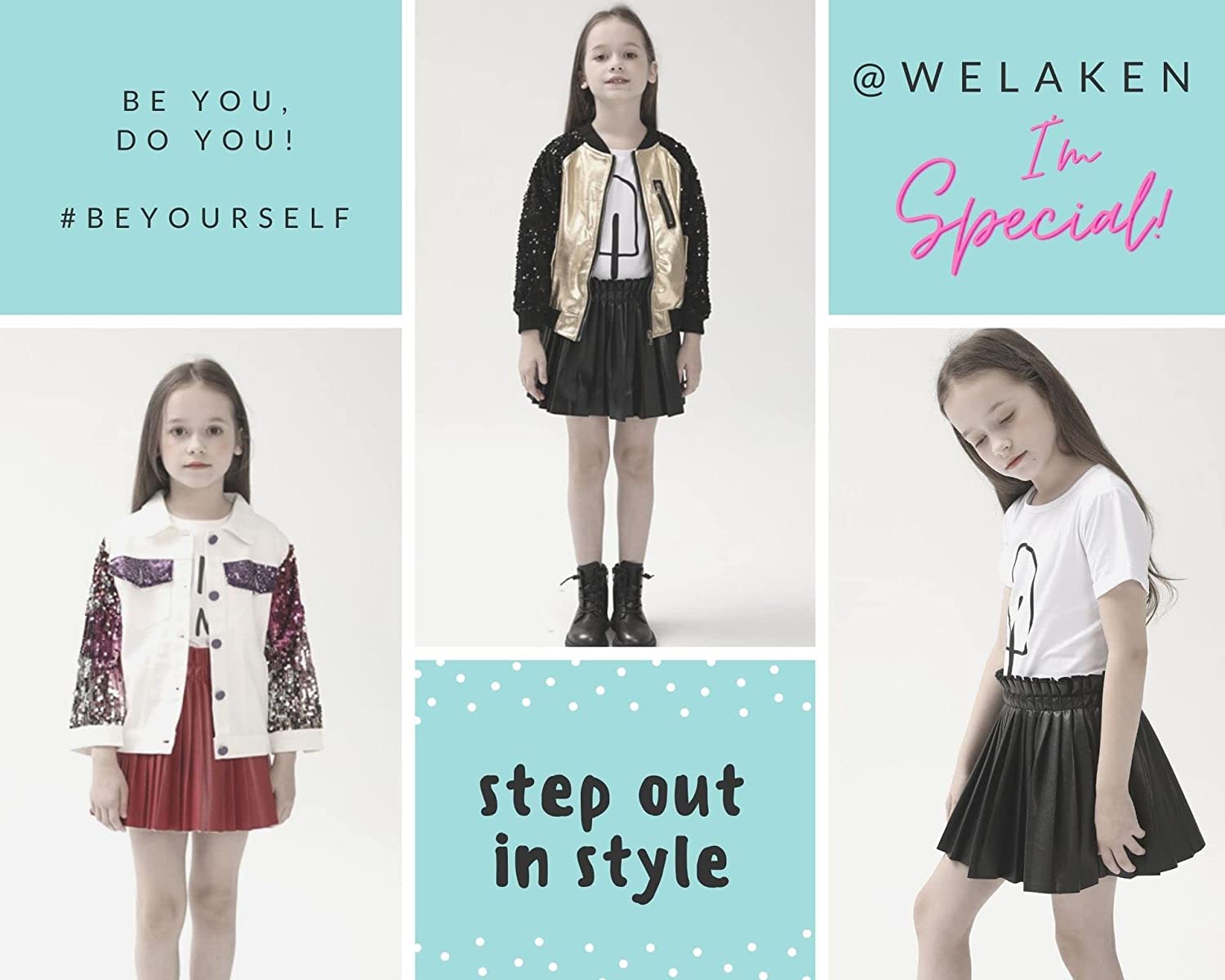 FEATURES: Elastic waist PU leather skirt, middle- length, neat folds. WELAKEN Girl's PU skirt will give you and your little one a perfect street look and makes you more outstanding in the crowd.
