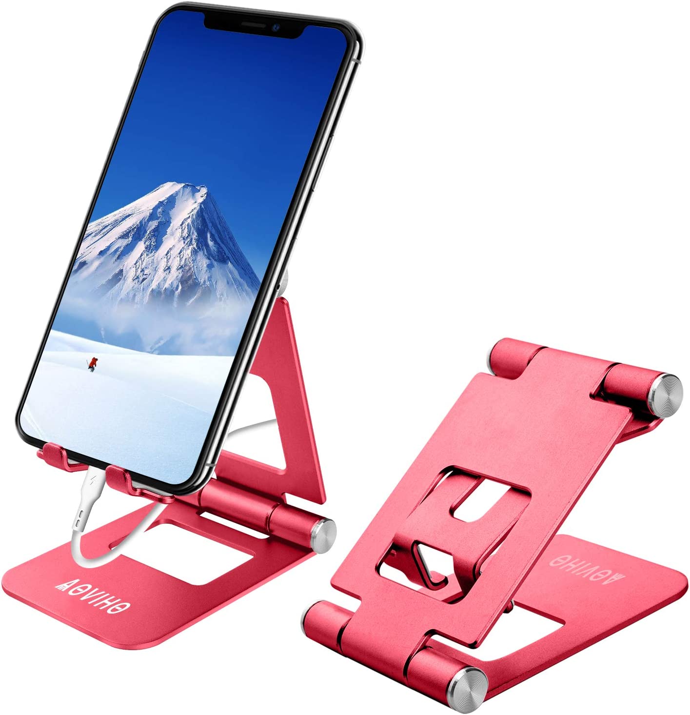 Aoviho Adjustable Cell Phone Stand Holder Fully Portable Phone Holder - Small Aluminum Desktop Stand for iPhone 12 Pro Mini 11 X XR XS Max 8 7 6 Plus (Black)