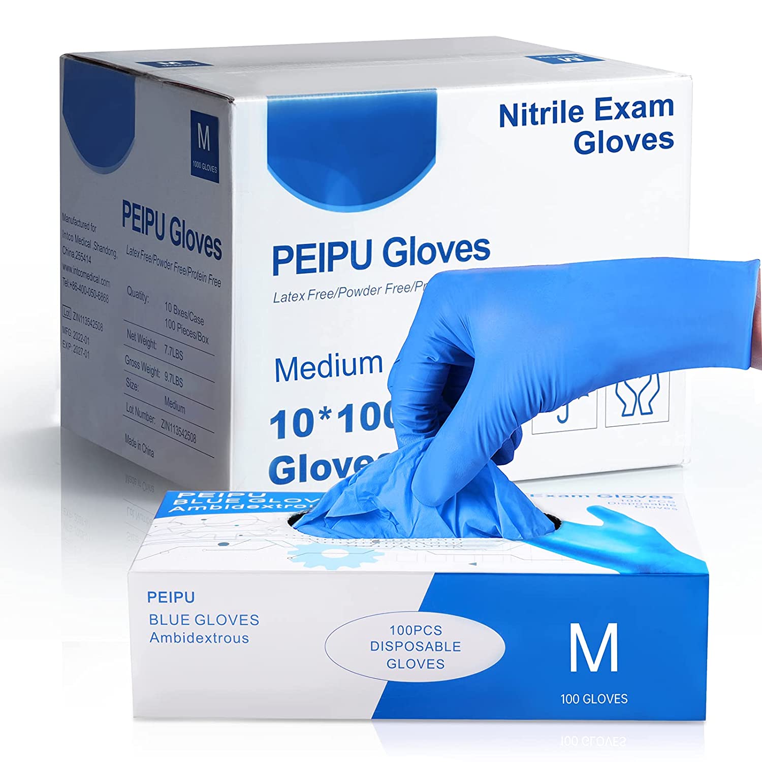 [High-quality Nitrile Gloves] -PEIPU Nitrile gloves are more thicker, stronger and more wear-resistant than typical vinyl gloves.PEIPU Nitrile gloves are 4 mils thick,These gloves shape the hand, provide comfort and responsive grip, are ideal for palms and fingertips, and have optimal sensitivity.