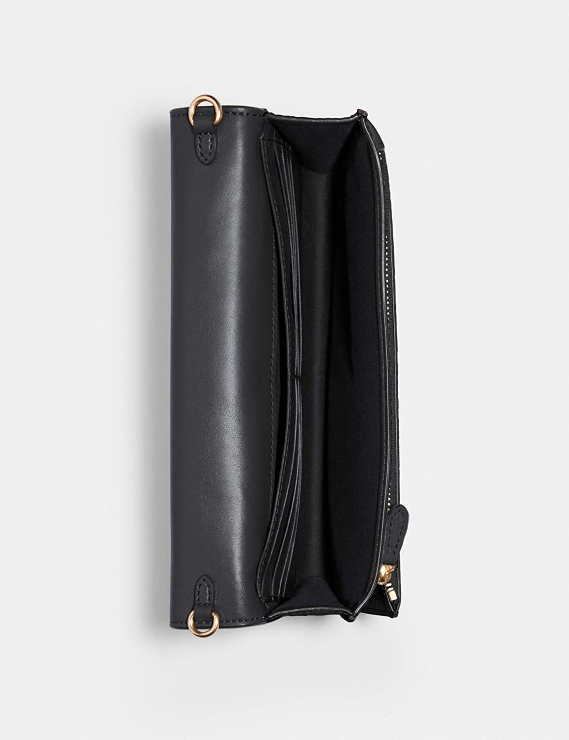 This refined pebble leather Anna Foldover crossbody clutch has an organized interior and features a detachable strap to wear on the shoulder or crossbody. Refined pebble leather. Eight credit card slots. Full-length bill compartment. Inside zip pocket. Snap closure. Outside slip pocket. Detachable strap with 23 Inch drop for shoulder or crossbody wear. 8 Inch (L) x 4.75 Inch (H) x 1.5 Inch (W)