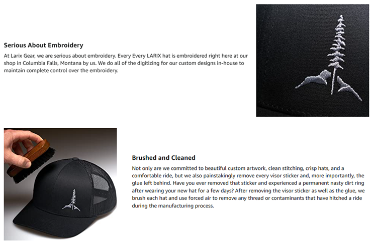 • SERIOUS ABOUT EMBROIDERY : Every Larix hat is embroidered right here at our shop in Columbia Falls Montana by us. It's our highest priority to achieve outstanding results by using the most advanced sewing technology and techniques available today.