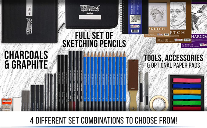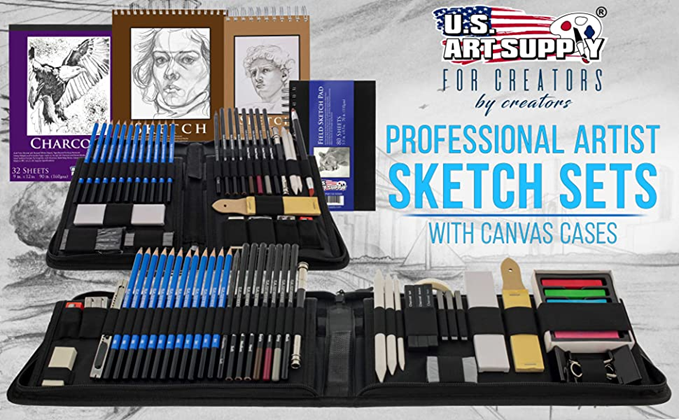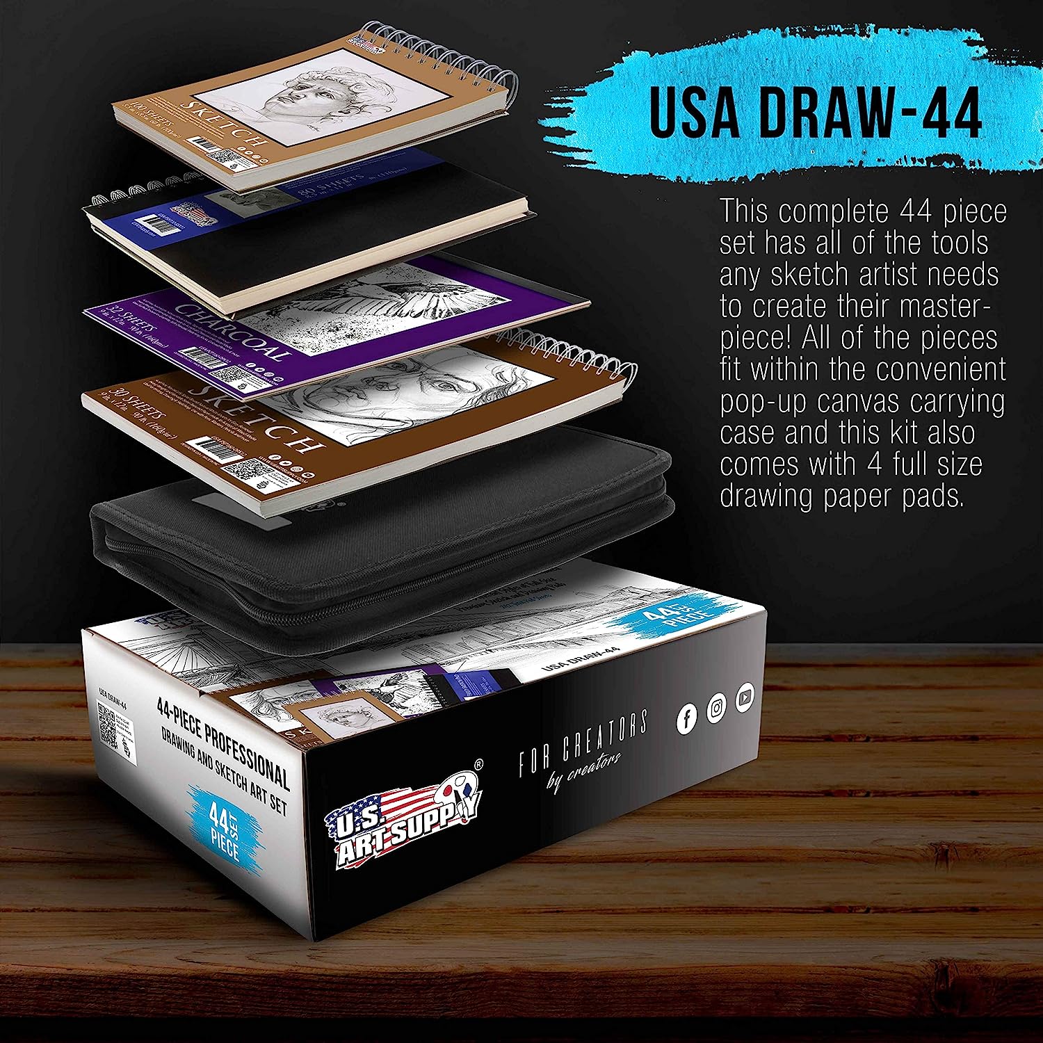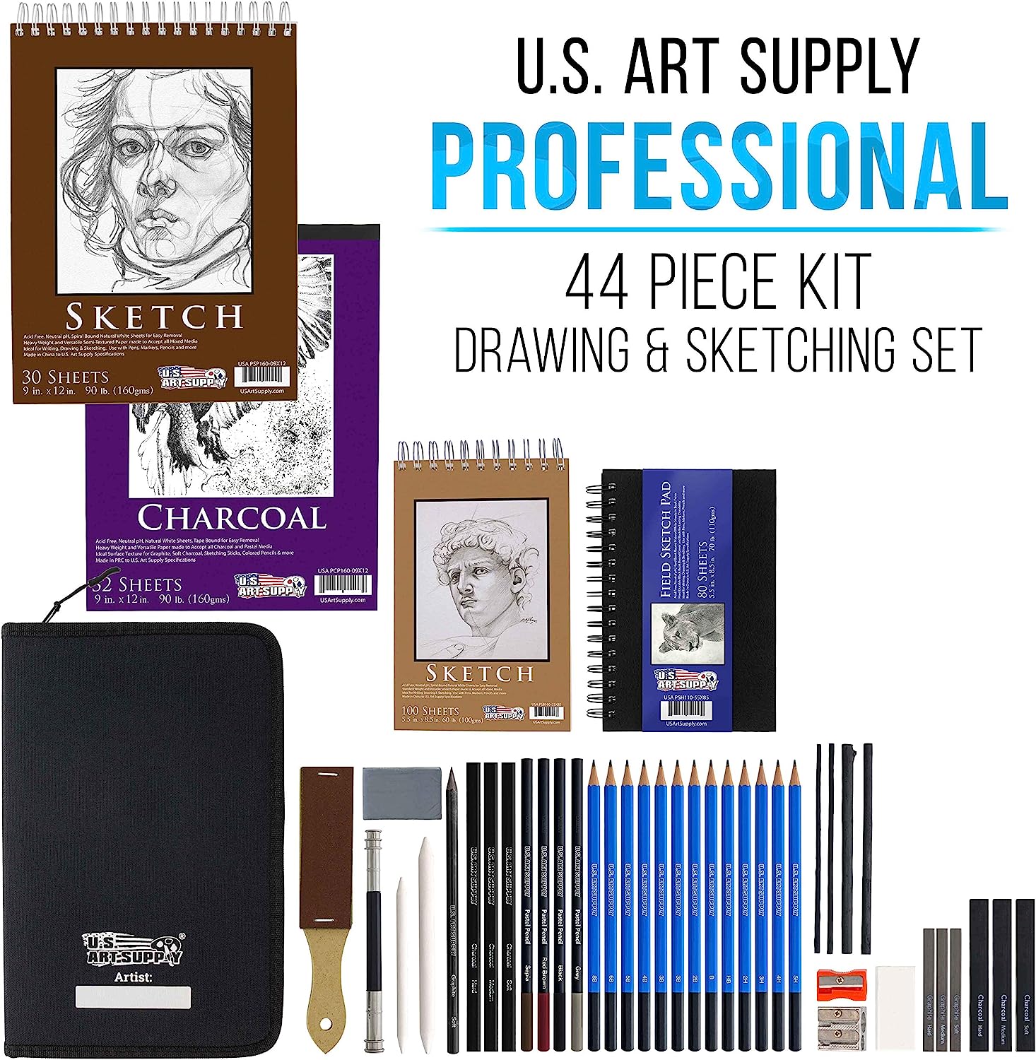 U.S. Art Supply 44-Piece Drawing & Sketching Art Set with 4 Sketch Pads (242 Paper Sheets) - Professional Artist Kit, Graphite, Charcoal, Pastel Pencils & Sticks, Erasers - Pop-Up Carry Case, Student