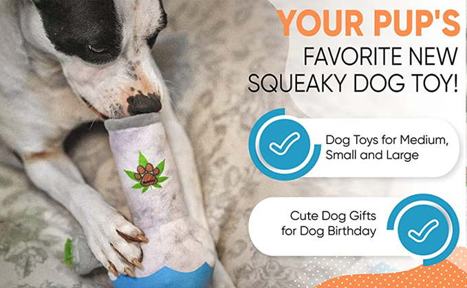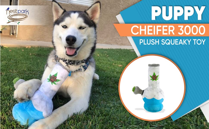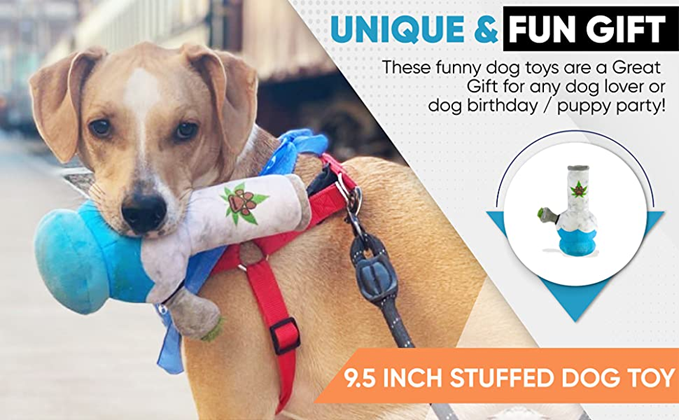 Nestpark Puppy Chiefer 3000 - Funny Dog Toys - Plush Squeaky Weed Dog Toy for Medium, Small and Large - Cute Dog Gifts for Dog Birthday - Cool Stuffed Dog Toys