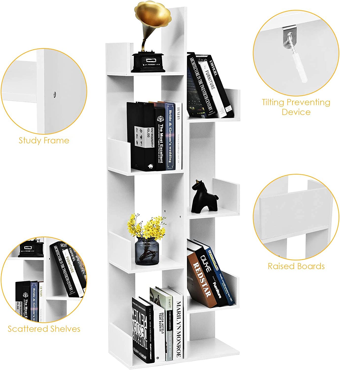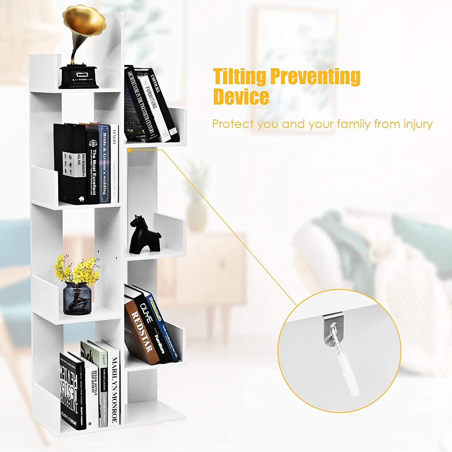 Tangkula 8 Shelf Bookshelf, Wood Bookcase with 8 Book Shelves, Free Standing Room Dividers, 57 x 20 x10 Inches, Display Storage Shelf for Books CDs Plants, Wooden Bookshelf for Home Office Decor