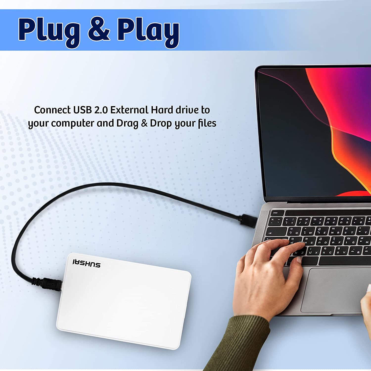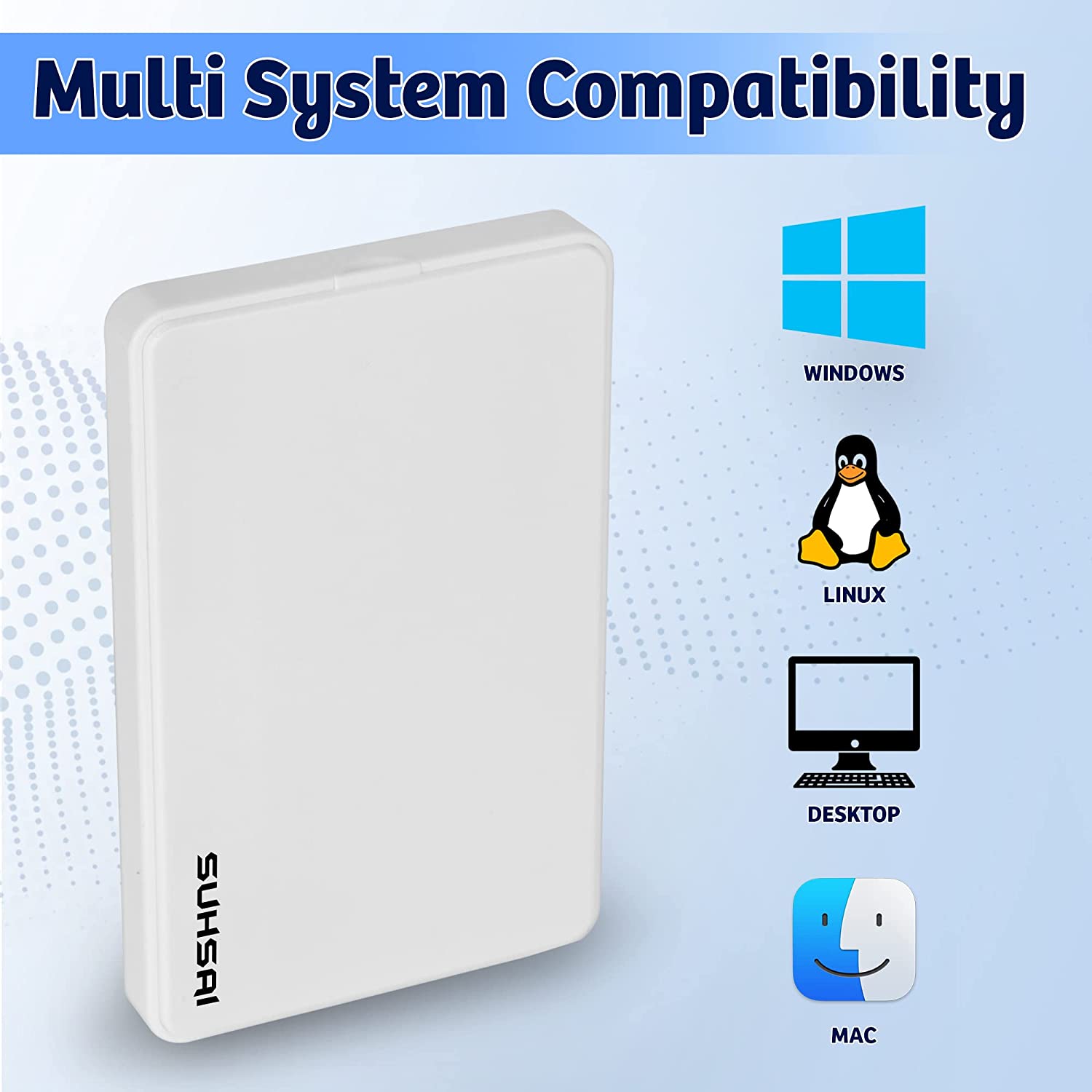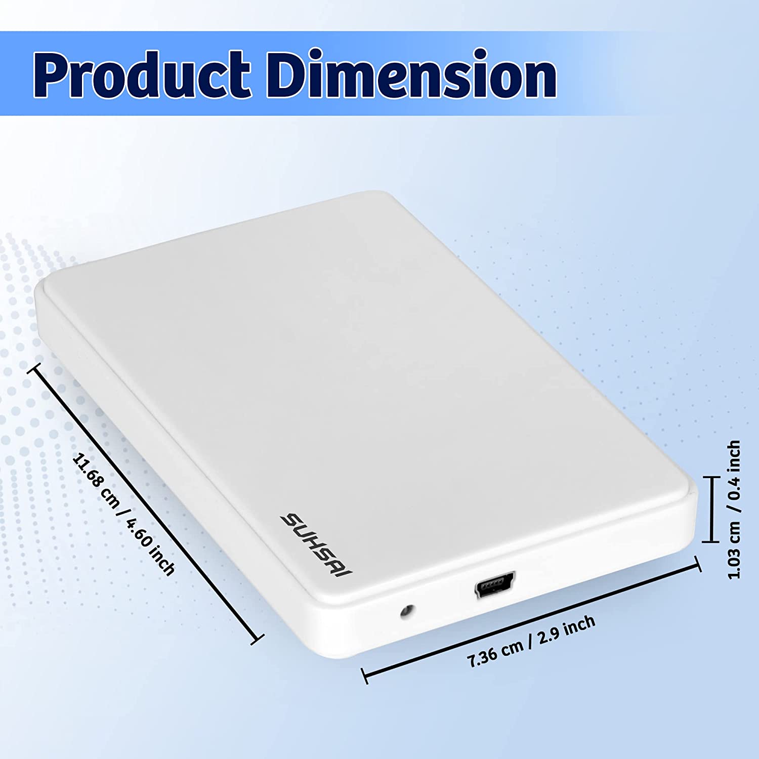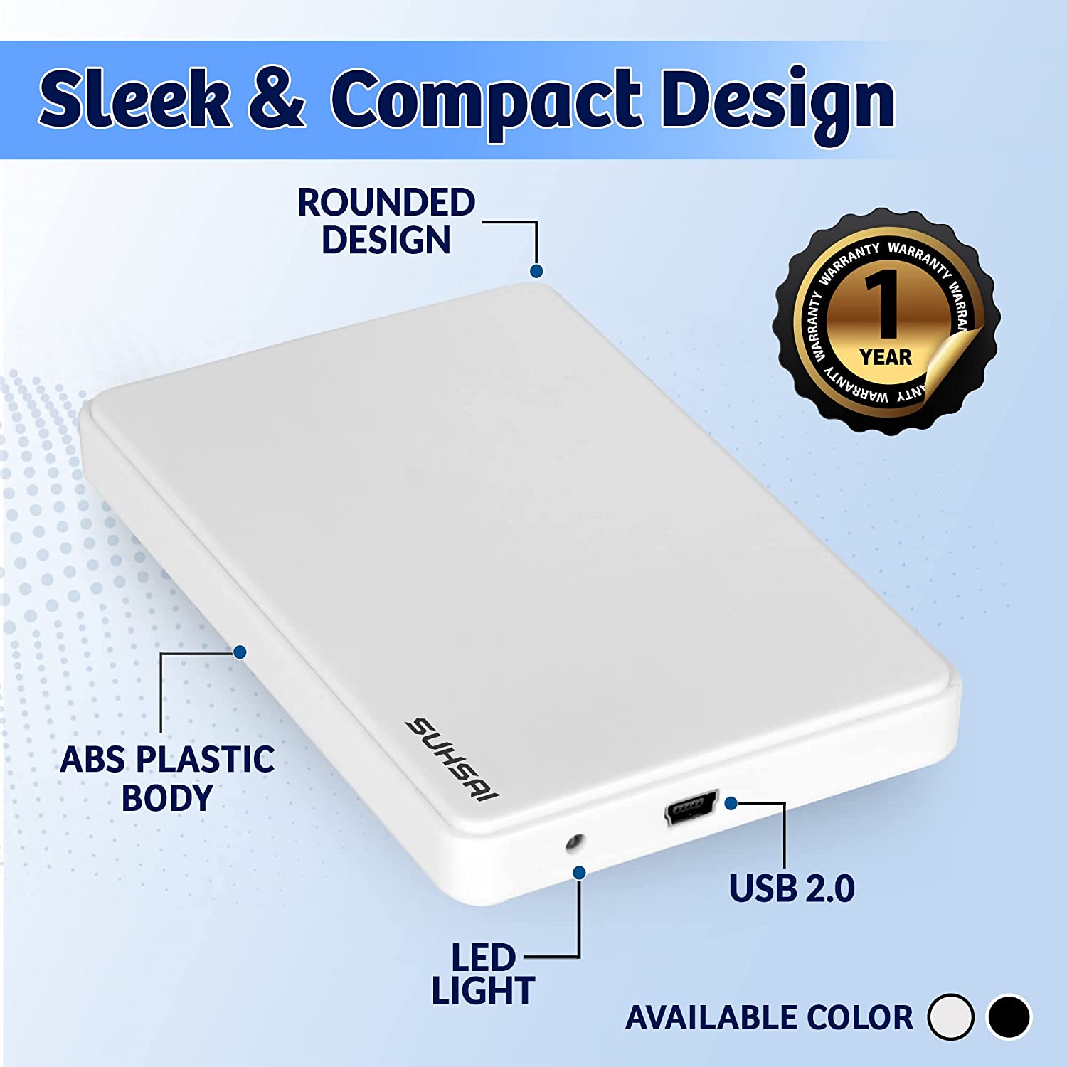 SUHSAI External Hard Drive USB 2.0 Hard Disk Storage and Backup Portable Hard Drive Memory Expansion - Ultra Slim 2.5 inch HDD Compatible with PC, MAC, Laptop, Desktop, Chormebook (100GB, White)