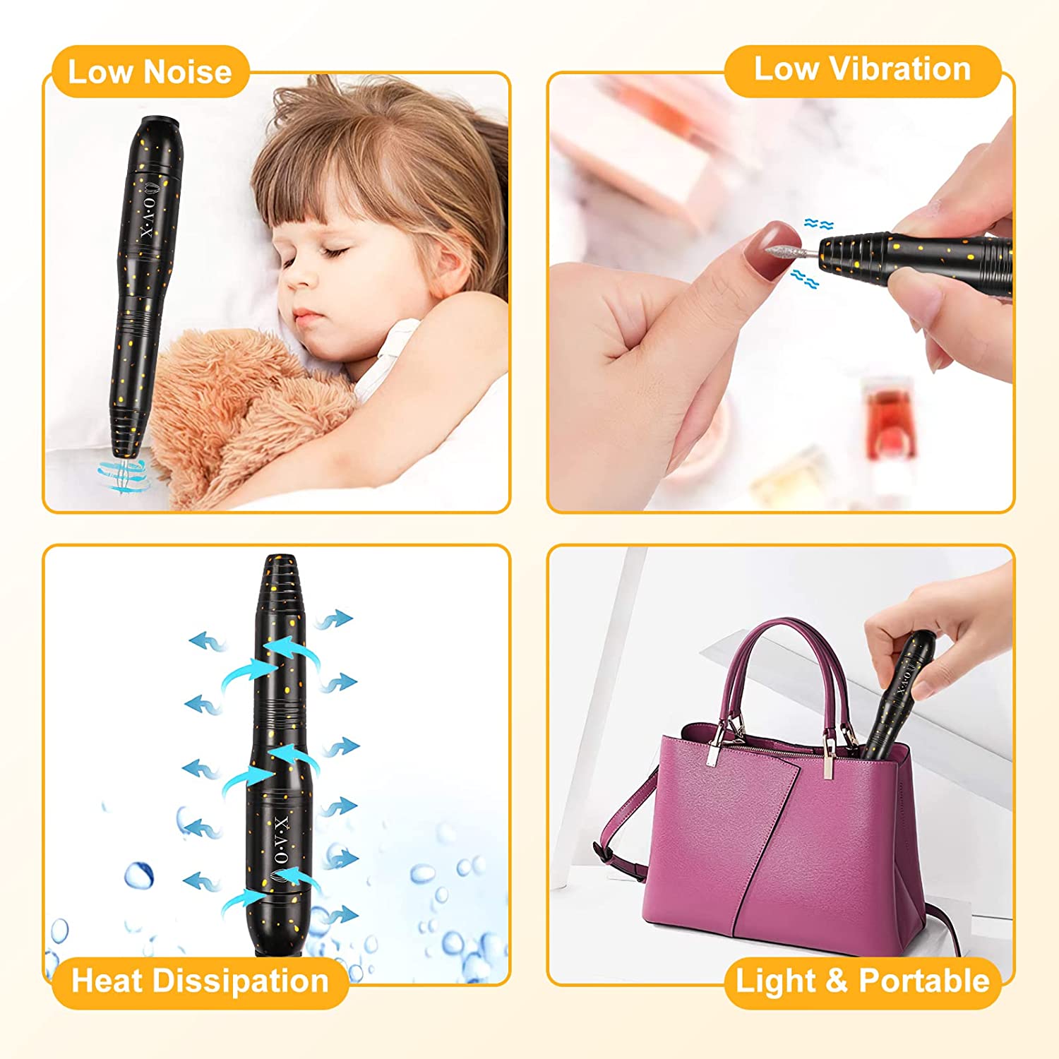 • Professional Nail Drill Set : The sets with 6 different drill bits, 106 sanding bands, 1 nail brush. It is can be used for manicure, pedicure, polishing and removing excess cuticles, or pets nail beauty and so on. Good choice for both home and salon use.