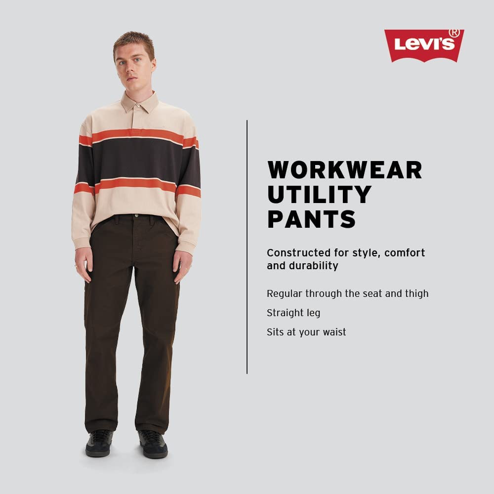 White Levi's logo over a photo of a model with hand on the jeans pocket