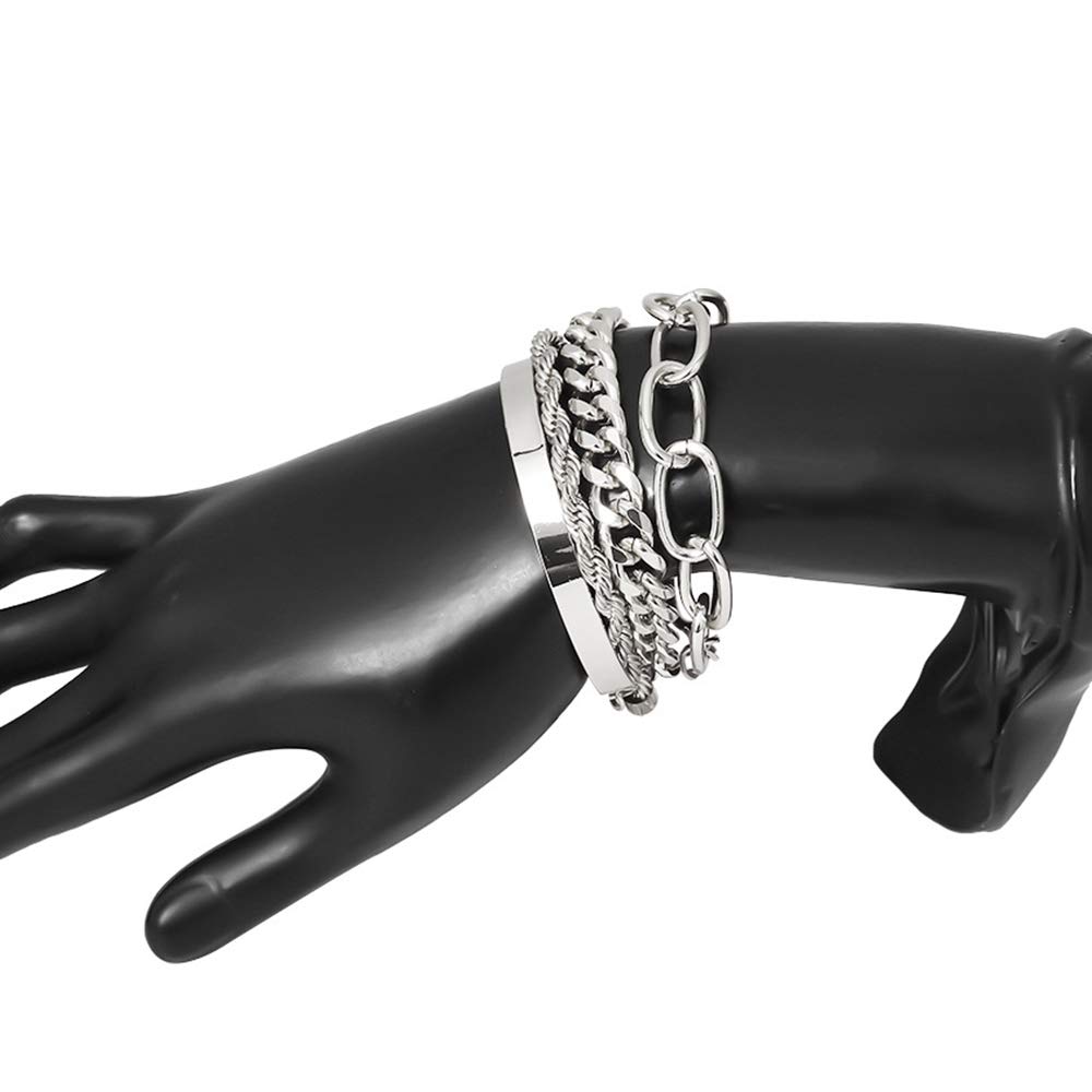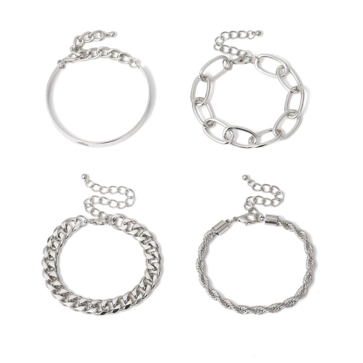 fxmimior Dainty Boho Gold Silver Chain Bracelets Set for Women Adjustable Fashion Beaded Chunky Flat Cable Chain Punk Bracelets Jewelry for Women Girls Gift Set of 4 (Silver)
