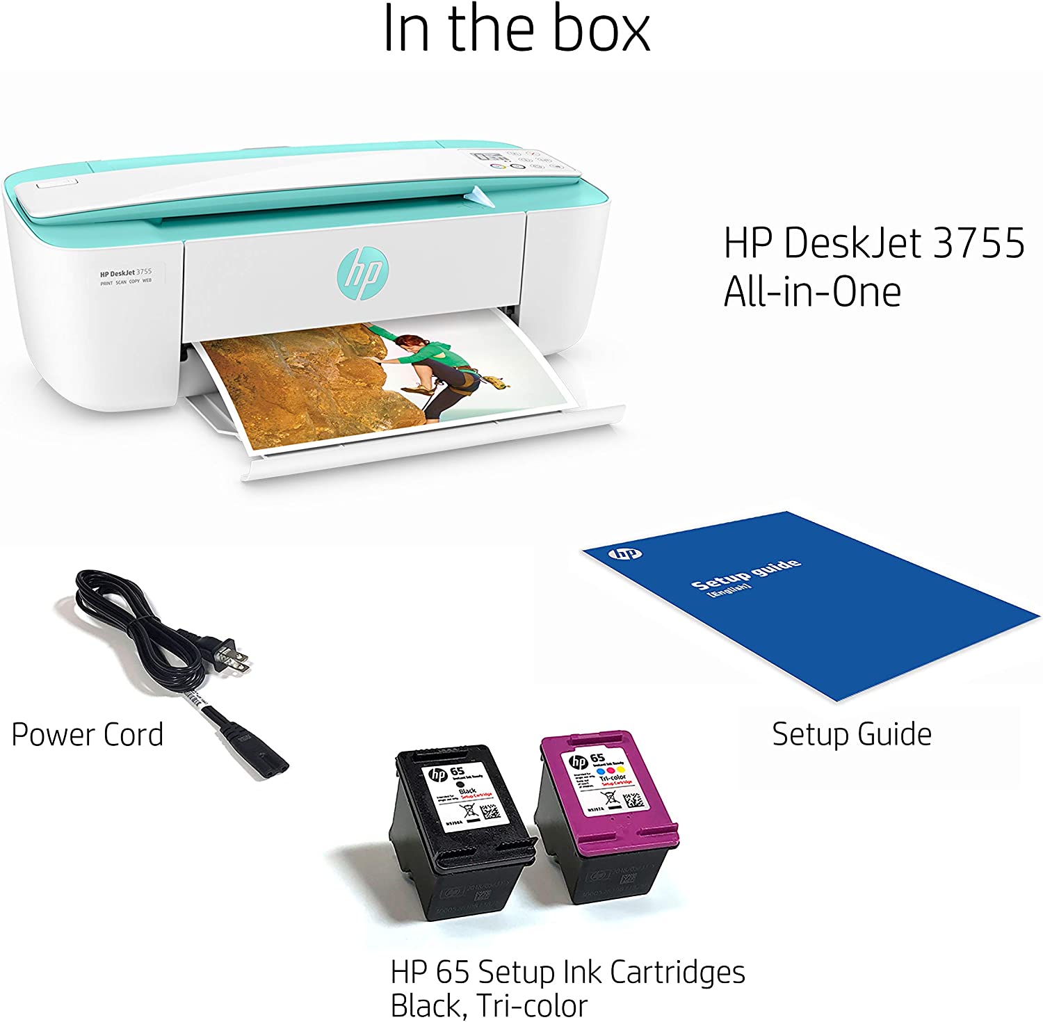 HP DeskJet 3755 Compact All-in-One Wireless Printer, HP Instant Ink, Works with Alexa - Seagrass Accent (J9V92A)