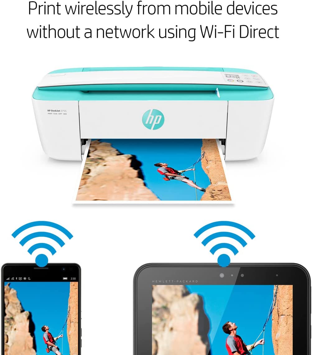 Save space and get the power you need with a small all-in-one printer for your home. The HP DeskJet 3755 (3700 series) inkjet printer comes with the scroll scan feature helps you easily handle most scan jobs, from plain paper to stiff media. This ultra compact printer is designed to fit where you need it. Save up to 50% on ink and never run out with HP Instant Ink. With Instant Ink, you print color or black-and-white for the same low price. Wirelessly print, scan, and copy what you need quickly and easily. Easily print anything you need from a variety of smartphones and tablets. Get connected quickly and start printing fast with easy setup from your smartphone or tablet.