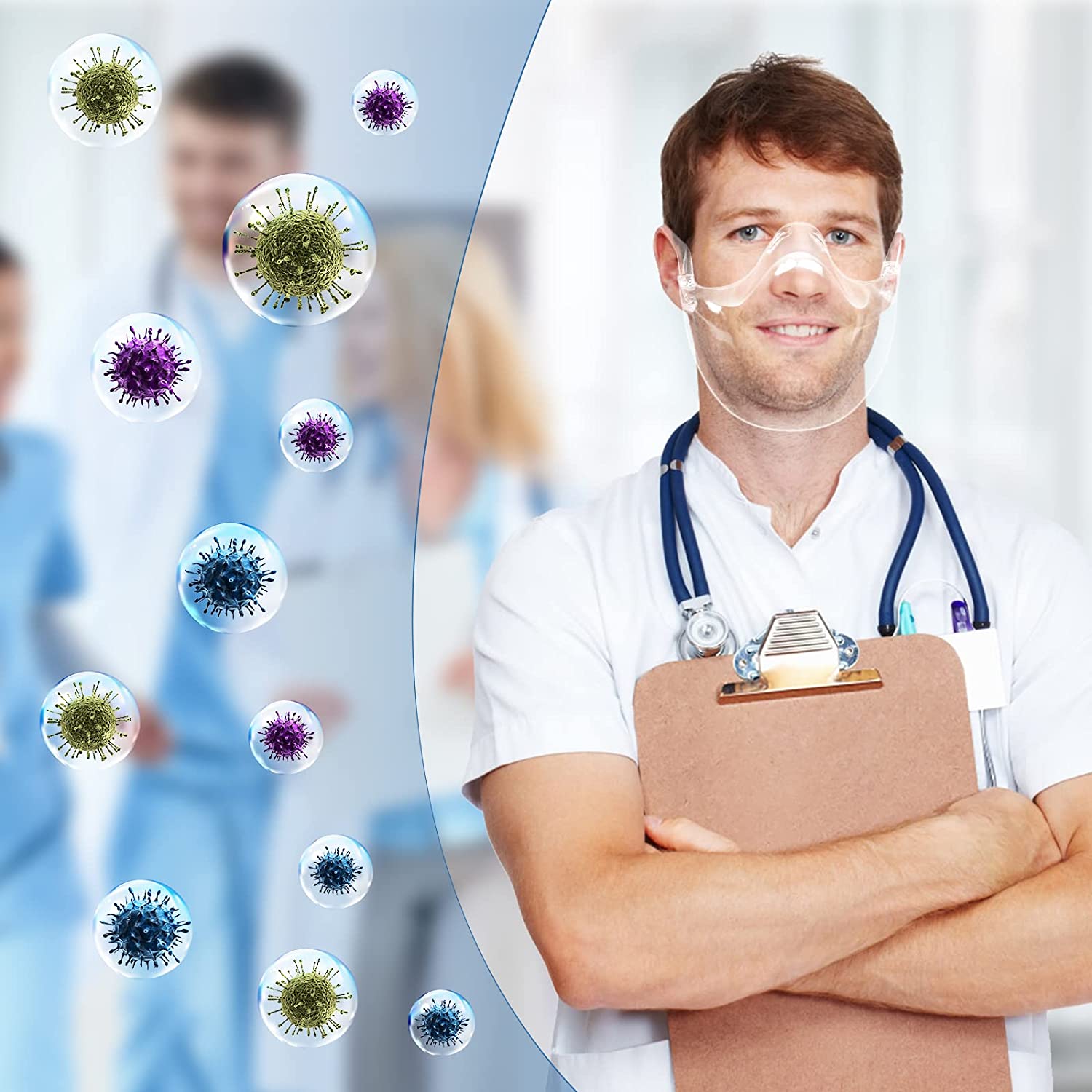 【BREATHABLE】M size is suitable for most adults, men and women. It keeps a space between the plastic and mouth/nose, so you can breathe effortlessly.
