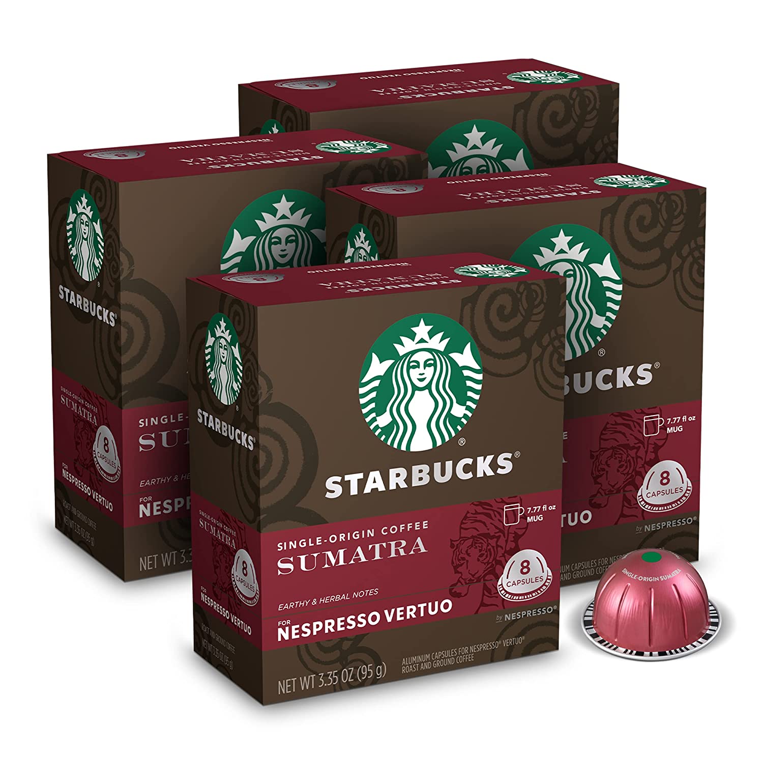 • INCLUDES: Enjoy the Starbucks coffee you love with four boxes of 8 capsules of Starbucks Single-Origin Colombia medium roast coffee for a total of 32 coffee capsules for Nespresso Vertuo machines