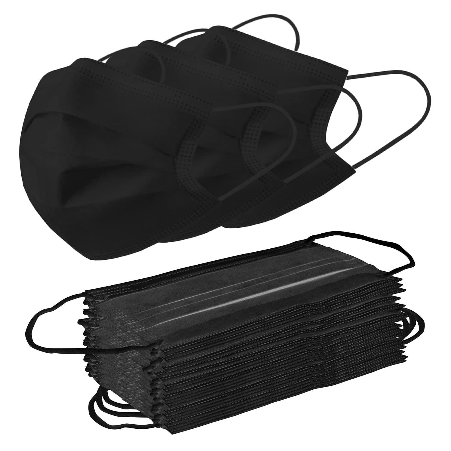 [50-Pack] Liberty Masks | Made in USA | Black | 3 Ply Disposable Face Masks | Adjustable Nose Wire | Breathable Face Covering | Lightweight | Soft Elastic Ear Loops