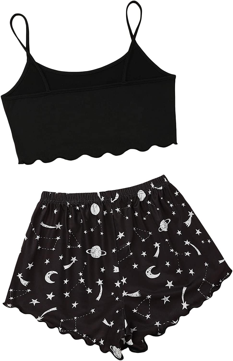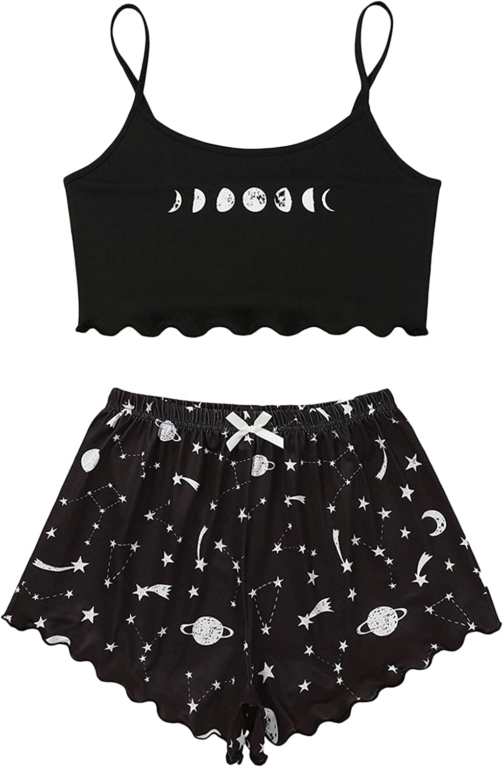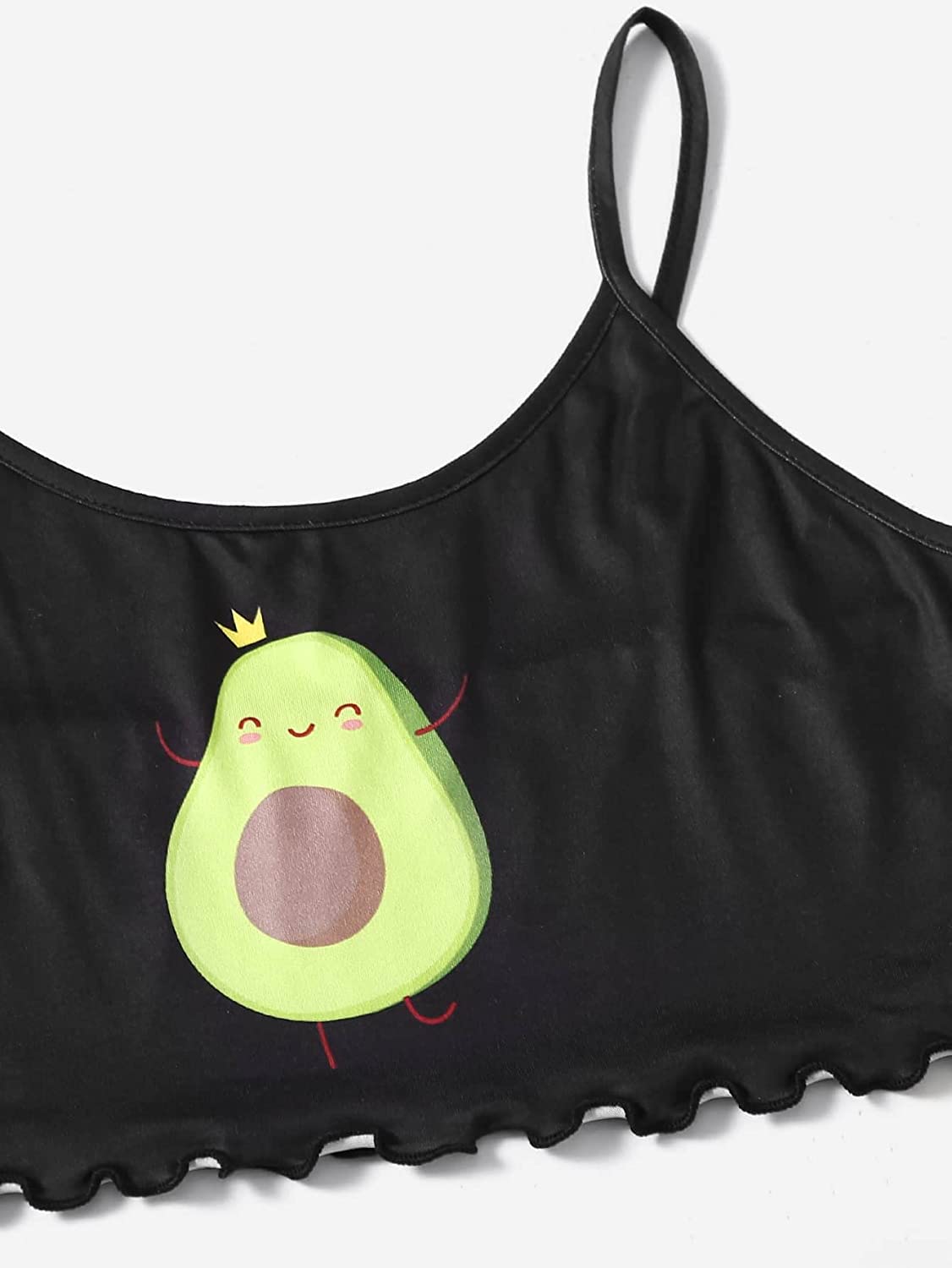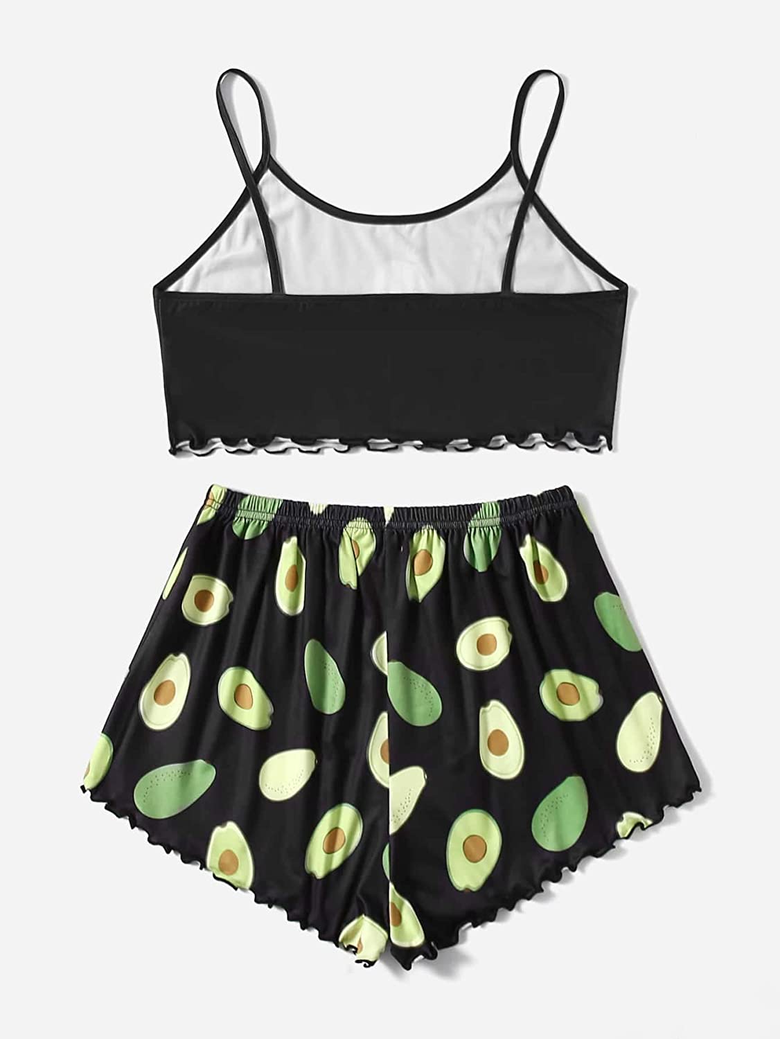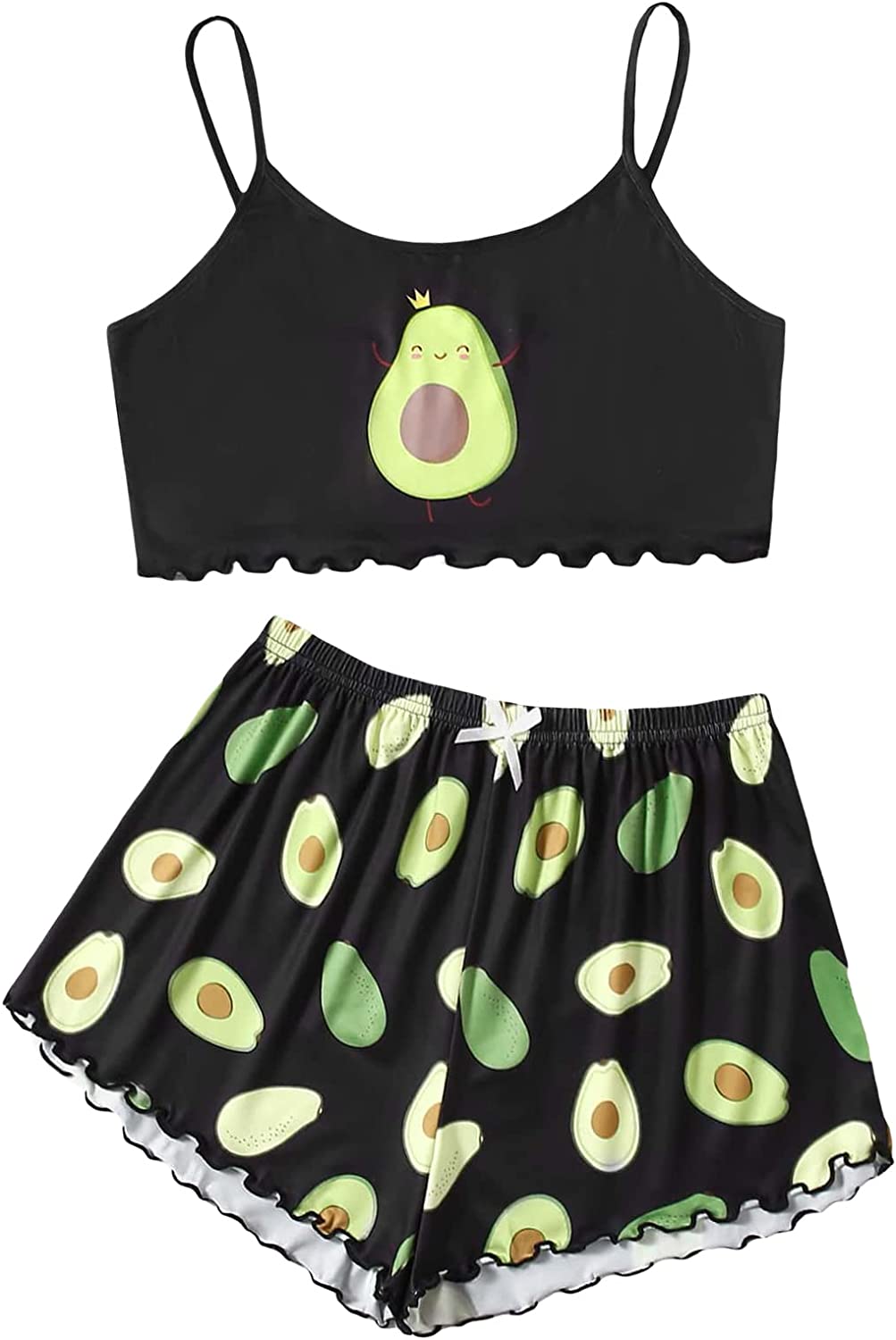 SOLY HUX Women's Cartoon Print Lettuce Trim Cami Top and Shorts Cute Pajama Set Sleepwear