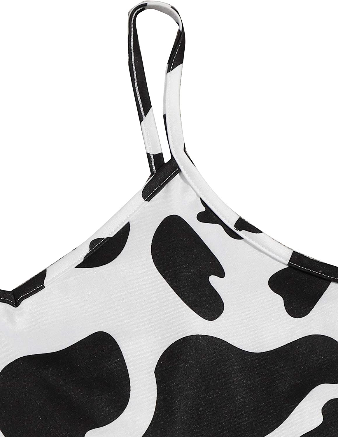 Top:Sleeveless, strappy, v neck, cow print, casual crop cami tops for women