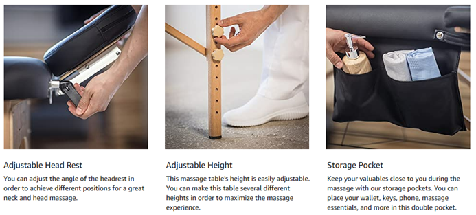 • EASY SET-UP - This massage table only takes one or two minutes to set up and or pack up and only has a few steps. Not to mention NO TOOLS ARE REQUIRED. Read the reviews to see for yourself!