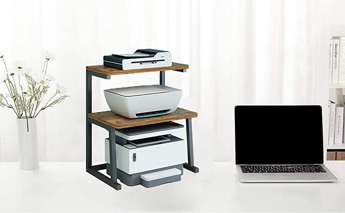 - 【3-TIER DESIGN】Our desktop printer stand comes with a 3-tier design. You can place the printer on the lower layer with more space, and place office supplies on the other two layers. The 3-tier design can save more space and provide a better storage effect.