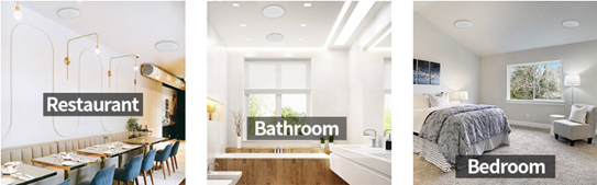 For the bathroom, a moisture -resistant ceiling speakers can be used. It is made of heavy duty materials and bears the humid environment better. It can withstand steam either in the bathroom or even in the kitchen. Such moisture-resistant speakers can also be used in the covered porch outside to play music. Sauna Room is another place where these ceiling speakers would work wonders as they would resist moisture.