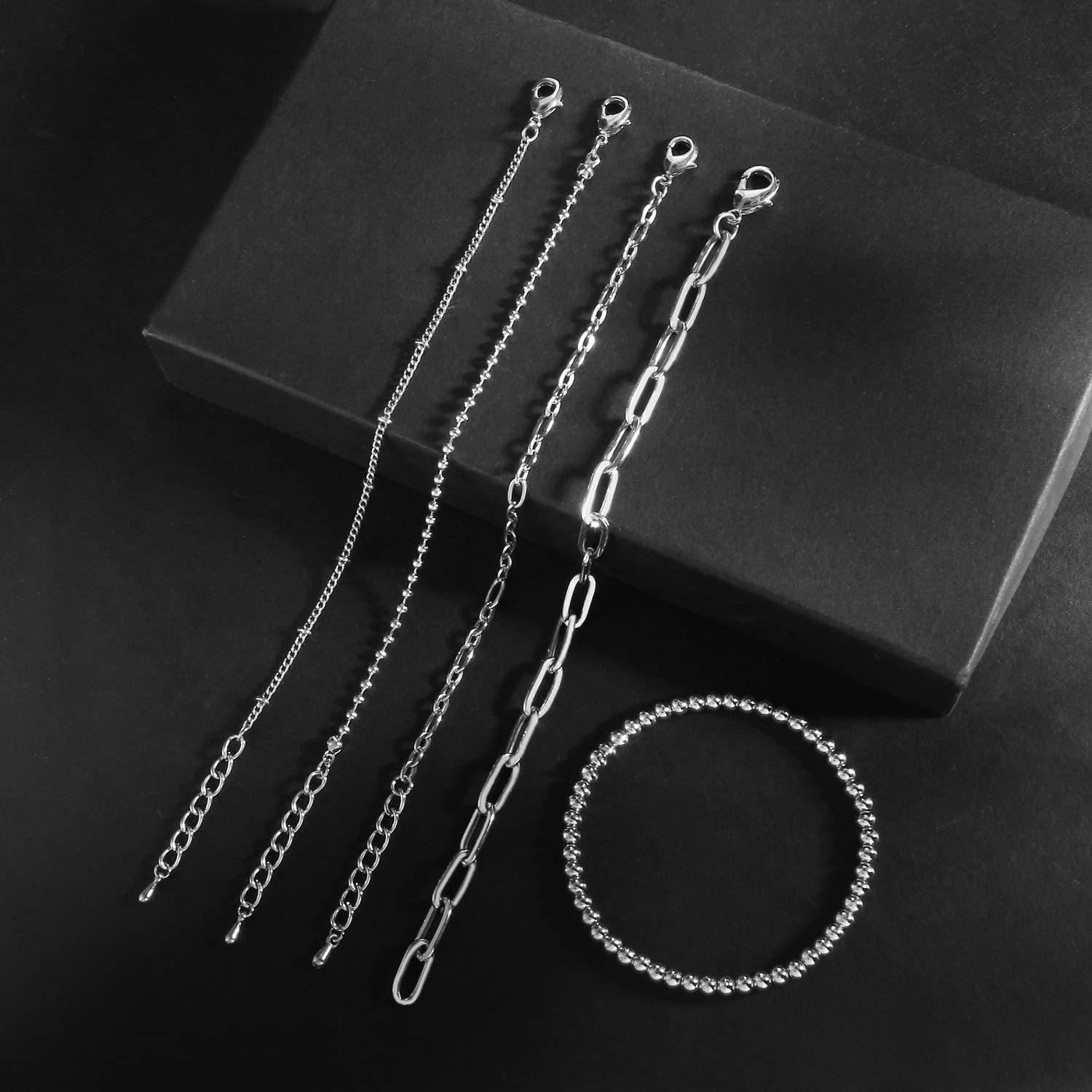 【Fashion Hot Styles】 A simple and exquisite bracelets set. Our bracelets including ball bead chains, flat snake chains, paperclip chains and other different fashionable chain designs. Each bracelet can be worn separately or together for a layered look with other chains.. Our bracelets are suitable for daily wear, ball, party, anniversary, prom, graduation, birthday or any special occasions.