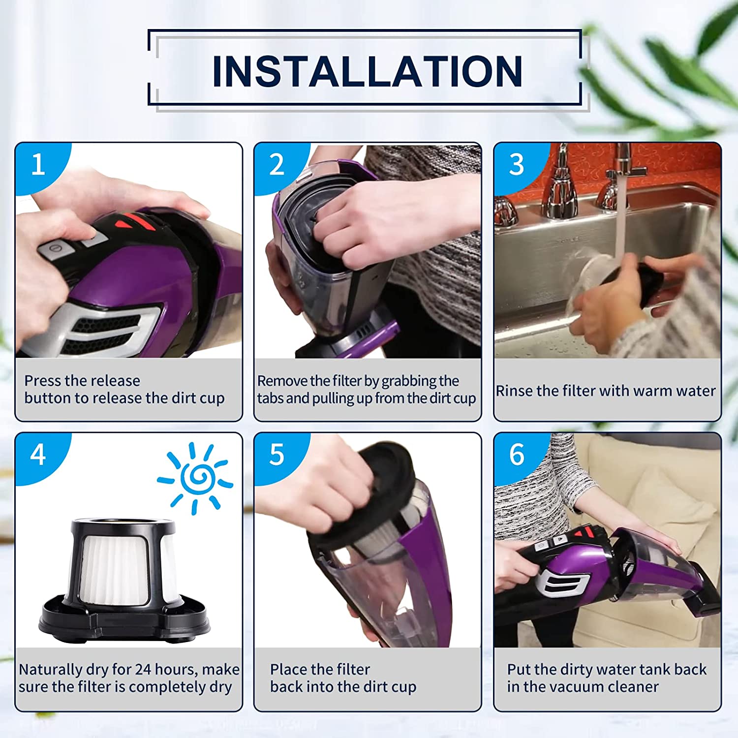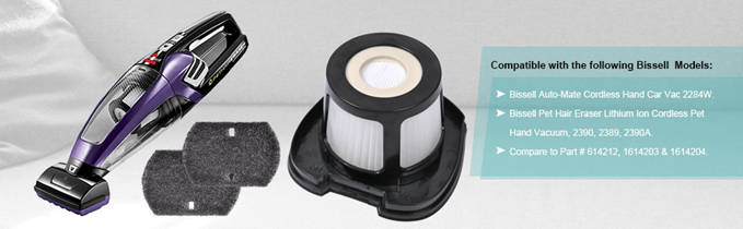 - 【COMPATIBILITY】: These vacuum filter replacement set compatible with Bissell pet hair eraser lithium ion cordless pet hand vacuum 2284W 2390 2389 2390A