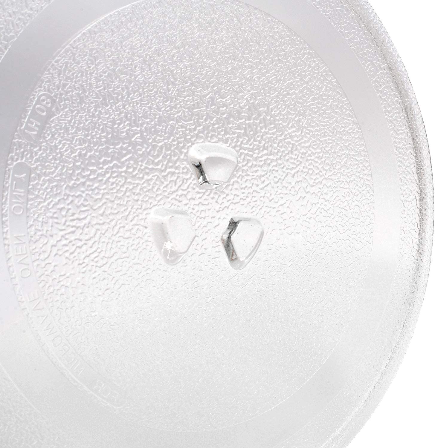- ◈Sturdy and Security◈ This Glass Plate comes complete with 3 small pips & indentations on base to enable it to sit securely on the centre support. The round plate is sturdy and durable due to the high grade thick glass. With the middle frosted surface makes food hardly to pill out during heating up. And this hygienic and food-safe glass cooking tray have the resistance to heat and light impacts, is ideal for heating all types of food in your microwaves.