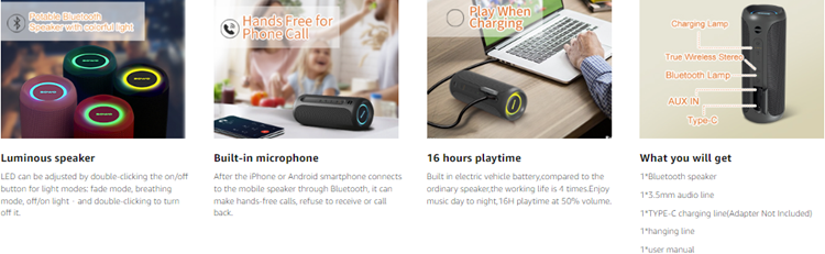 - [BASSBOOM BASS AND WIRELESS STEREO SURROUND SOUND]: The BASSBOOM technology designed by SOWO portable Bluetooth speaker improves the bass by 28% on the original basis, enhancing stronger auditory enjoyment.The wireless speaker with bluetooth supports TWS function, you can purchase two speakers at the same time to truly enjoy the stereo surround sound of a movie theater by pairing the TWS function.