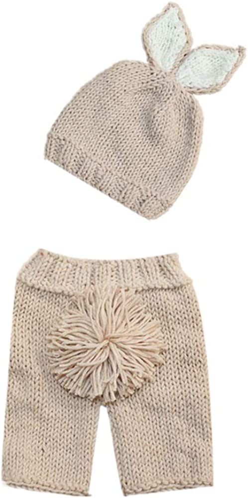 ♛【Crochet-knit Bunny Beanie Hat】Cute, soft and fully hand made baby knit crochet costumes, 1st Easter bunny newborn pictures outfit set. Newborn baby boy girl Beanie hat with cuteness animals rabbit ears design, great for spring prop, newborn pictures, first pictures. Super cute Halloween, Easter, or newborn picture idea, take pictures in an Easter basket, Happy Easter pics of newborn bunny outfit, Great newborn photography set as Easter gifts first pictures, baby-shooting for your little one;