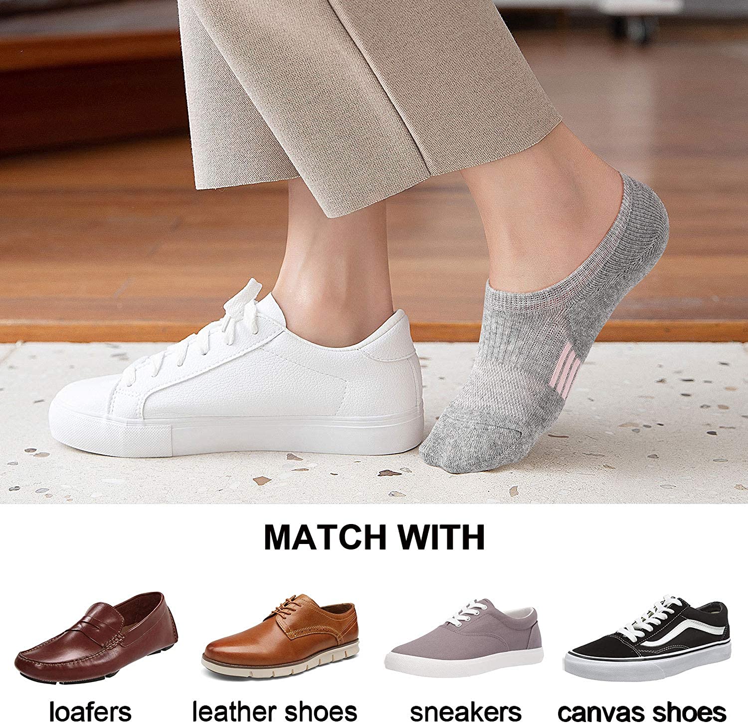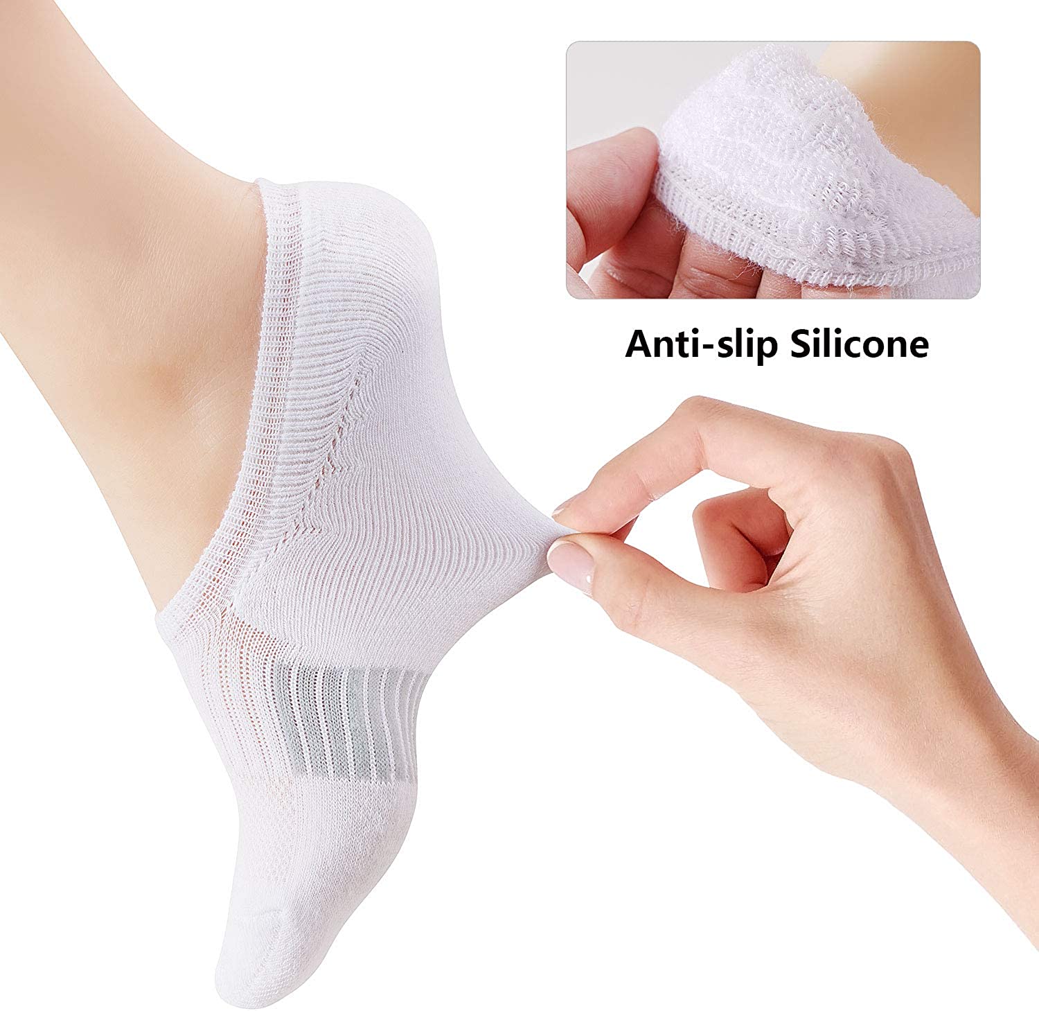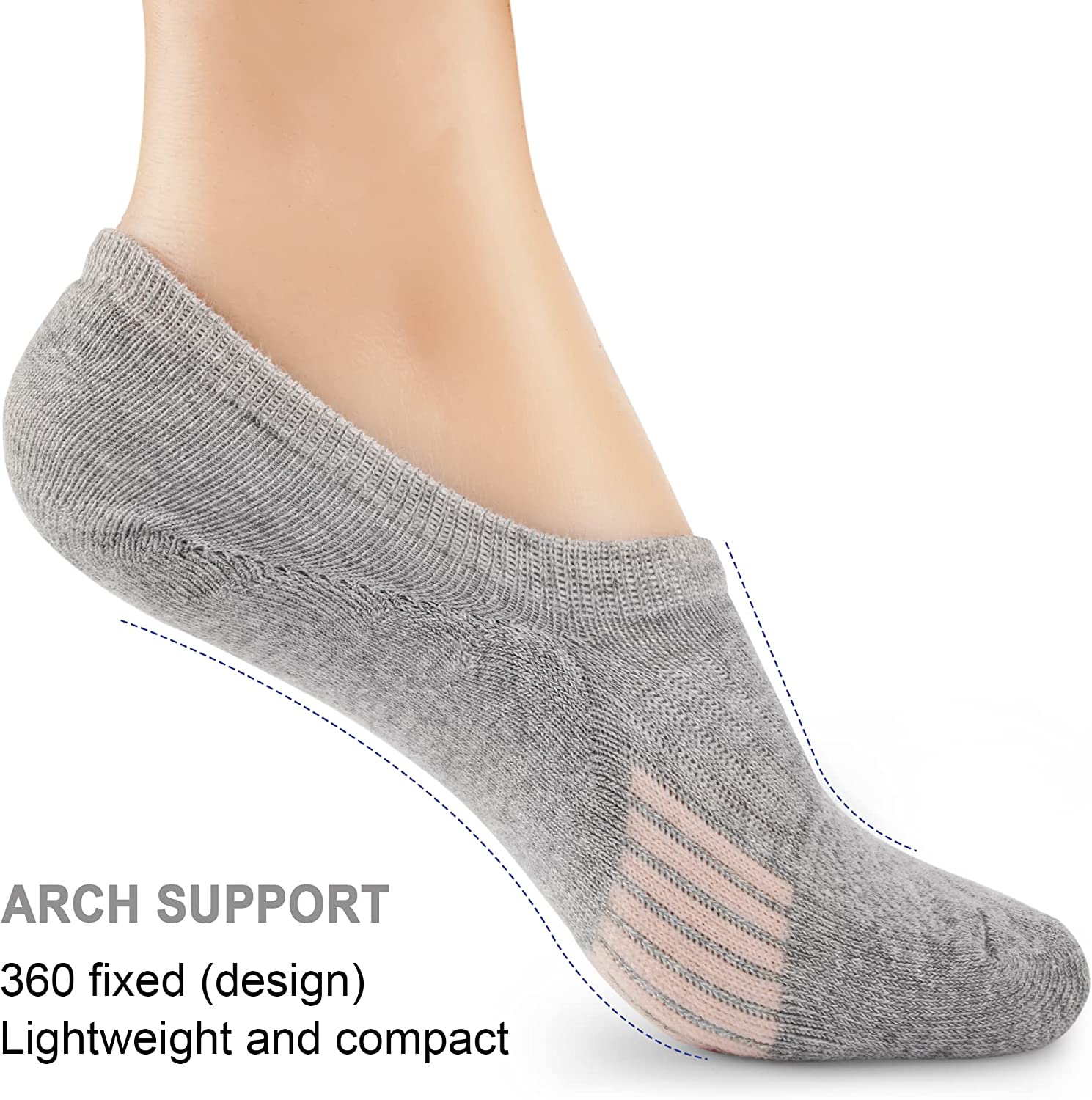 • ARCH SUPPORT & CUSHION SOCKS - Upgraded cushion sole covers the entire bottom of the no show socks. Provide maximum cushioning space for the foot, reducing friction in sports or daily activities. Proper compression of the arch will keep your arch safe and stable while reinforced heel and toe provide outstanding durability.