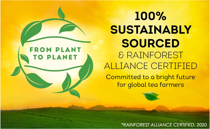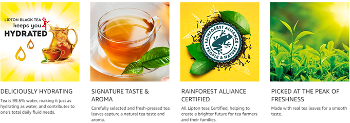 • Lipton Black Tea is sustainably sourced, made with only 100% Rainforest Alliance certified tea bags.