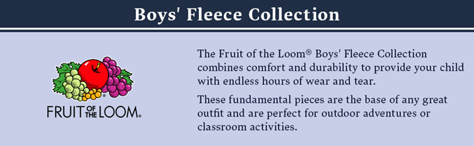 The Fruit of the Loom boys’ fleece combines comfort and durability to provide your child with endless hours of wear and tear. Our boys’ fleece is perfect for outdoor adventures or classroom activities. This sleeveless full zip jacket is new spin on a classic piece. He’ll love layering his favorite long sleeve with this great jacket. This full zip jacket comes in great, essential colors. Shop the rest of the boys’ fleece to find coordinating styles
