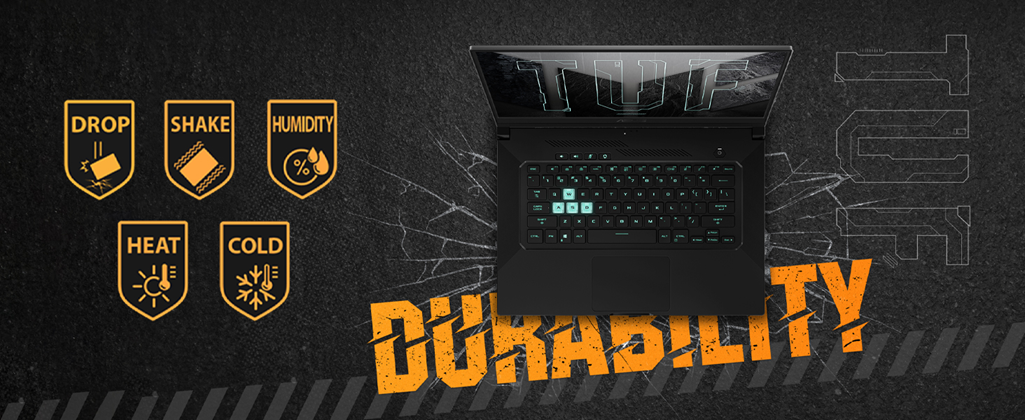 In order to earn the TUF Gaming name, laptops must successfully survive rigorous MIL-STD-810H tests. Test devices are exposed to drops, vibration, humidity, and extreme temperatures to ensure reliability. The Dash F15 is more than capable of withstanding accidental bumps and knocks on the move.