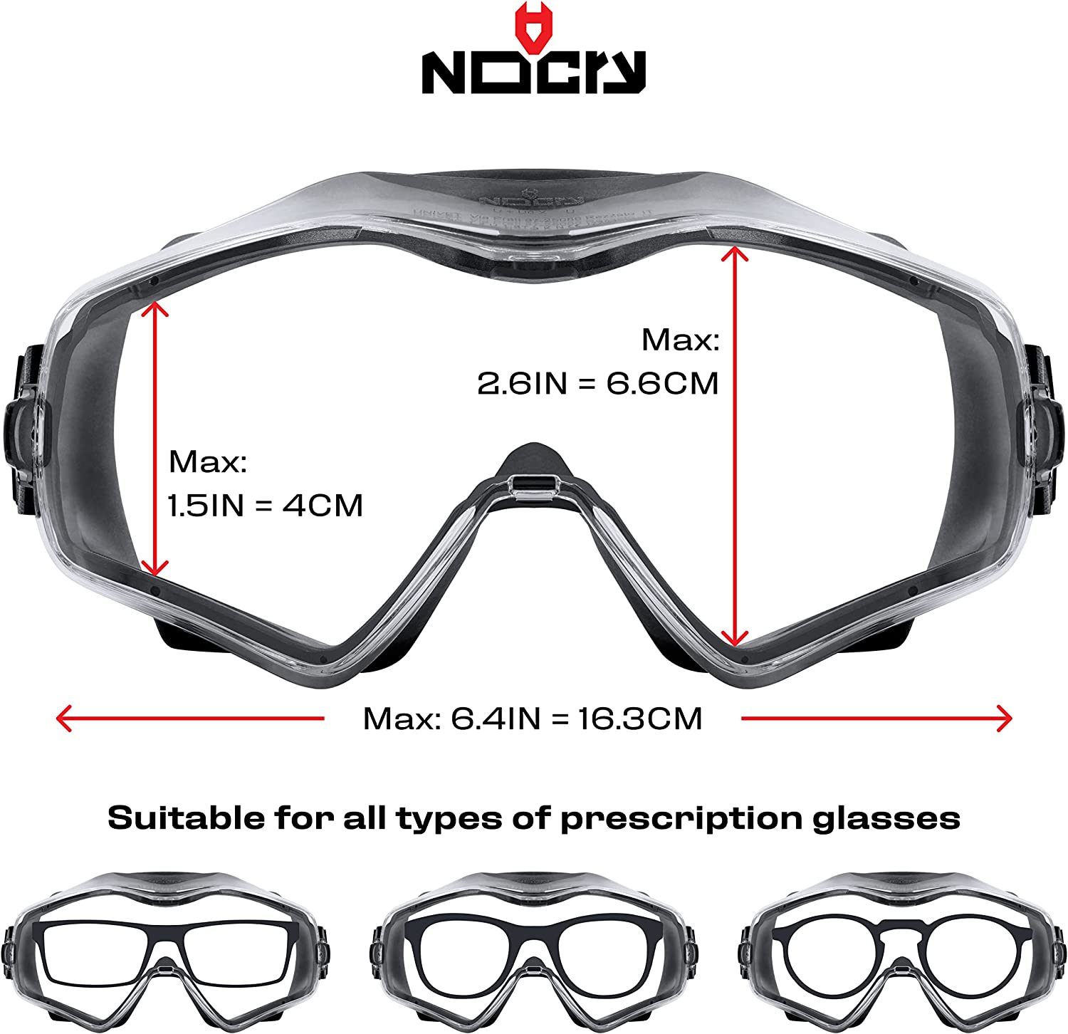 NoCry 6X3 Safety Goggles that Fit Over Glasses; Anti Fog and Scratch Resistant Protective Coating; Clear, Vented Panoramic Lenses with Extreme Impact Resistance; ANSI Z87.1 Certified Eye Protection