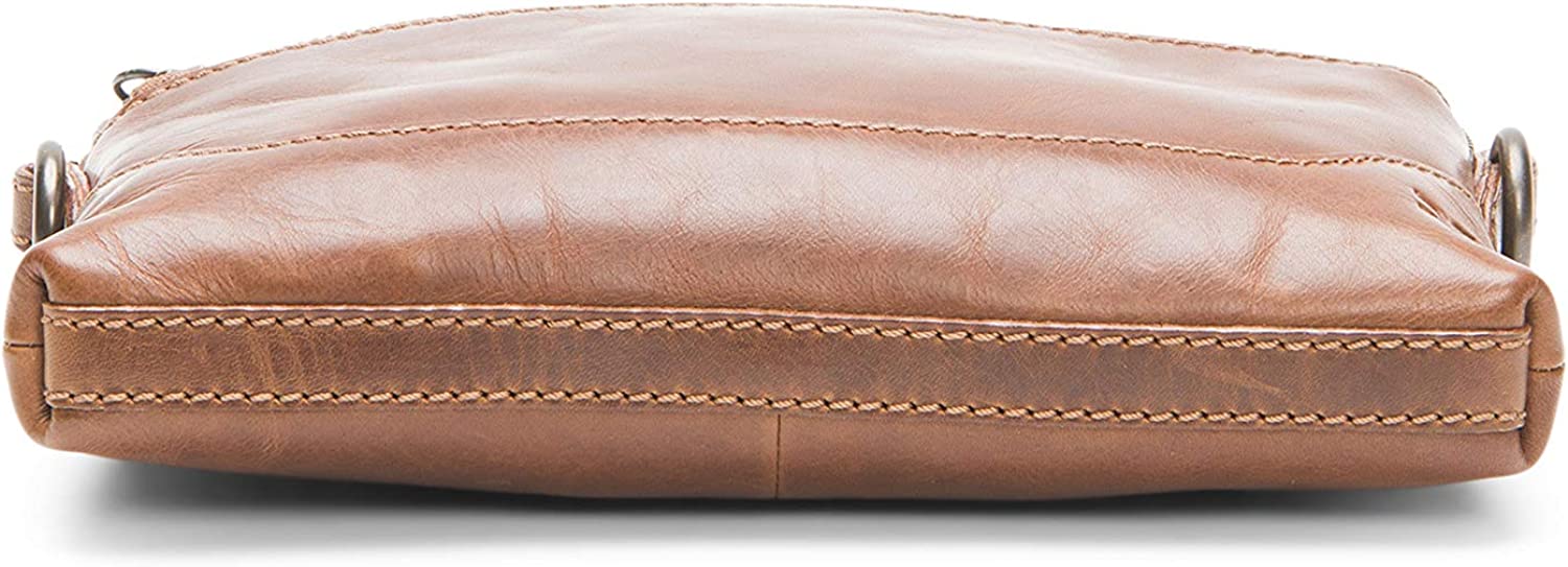 Antique pull up leather crossbody and wristlet. Zip closure and front zip pocket. 3 credit card slots and 1 slip pocket. Removable wristlet and crossbody strap. Measurements: 5.75"HX 9"W X 1"D; Strap drop 23".